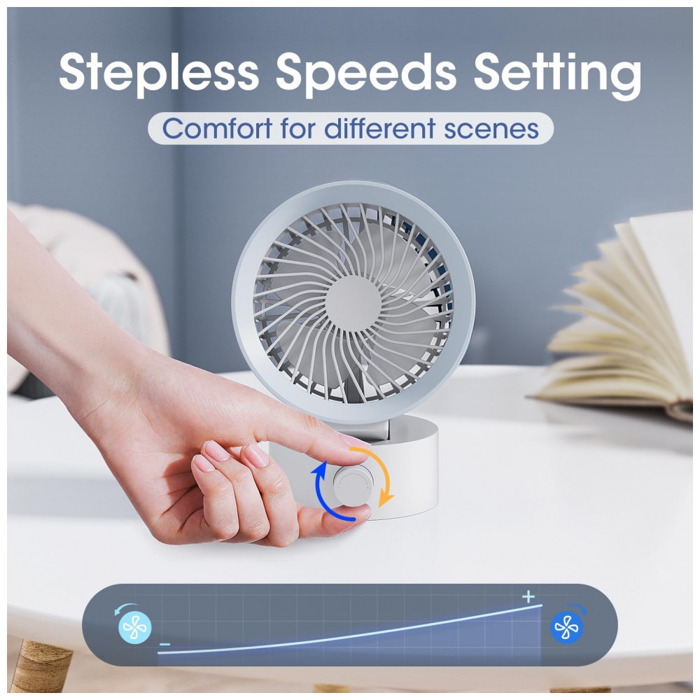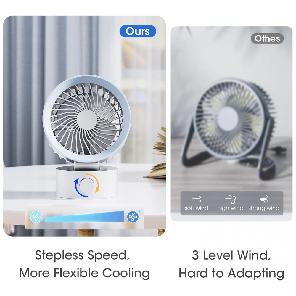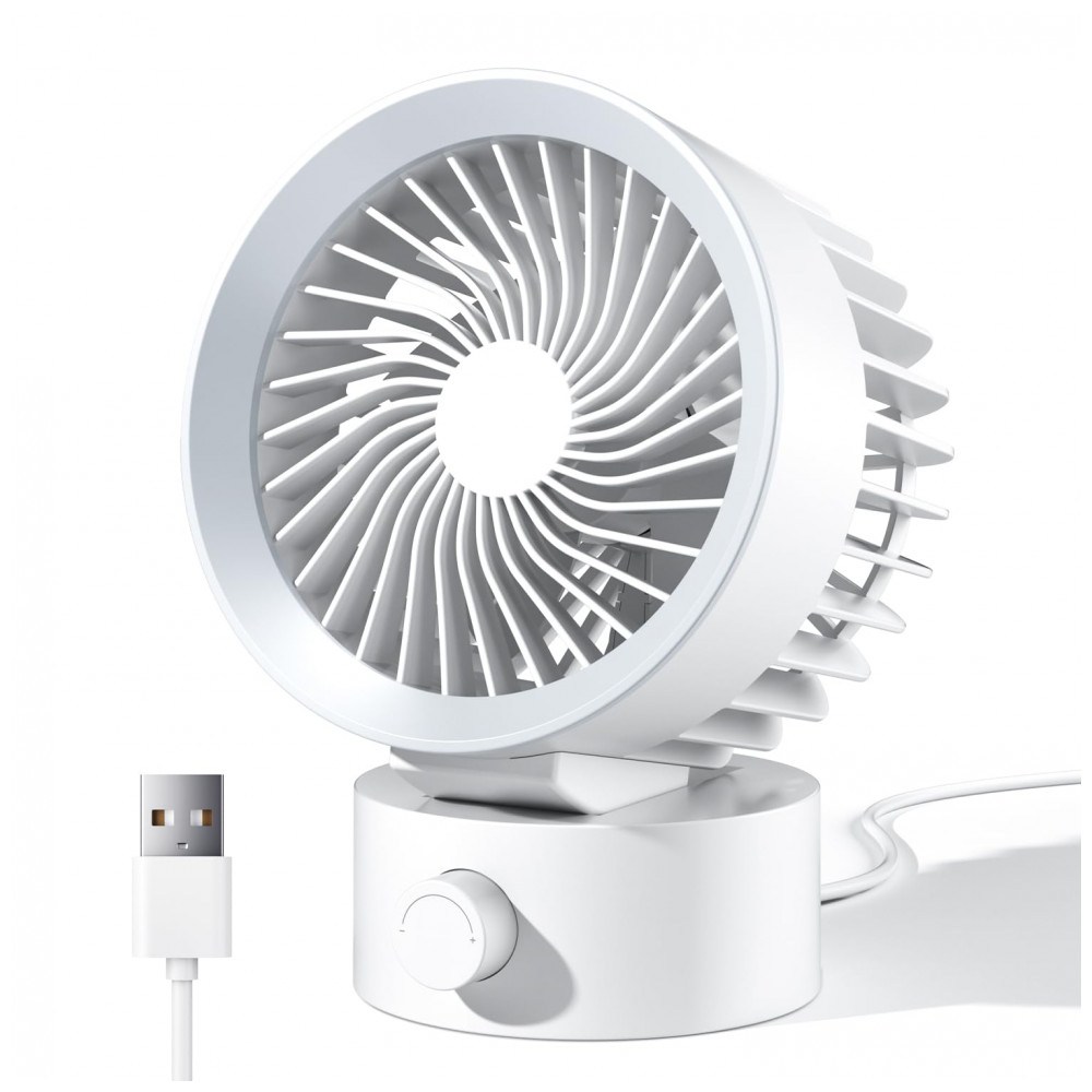 Ventilador de Mesa USB KinYiLO Branco Fluxo de Ar Stepless Ajustável Silencioso <35dB 3 Lâminas Potência 5W 5V Modelo LLD-F87