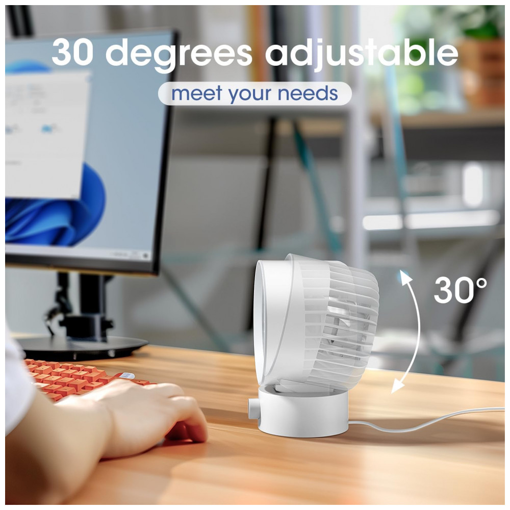 Construído em plástico resistente com design clássico autônomo, possui inclinação angular ajustável para direcionamento direcionado do fluxo de ar. Cabo de alimentação de 1,5 m garante flexibilidade de posicionamento em mesas ou superfícies planas. Dimensões compactas de 11,2 x 14,5 x 8,9 cm e peso de 287 g facilitam armazenamento e transporte em escritórios, dormitórios ou viagens.