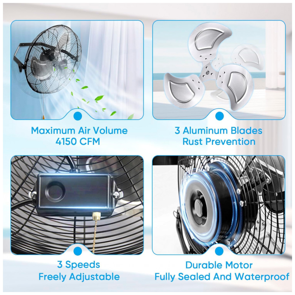 Fácil Montagem e Uso – Montagem simples com suporte de parede resistente e acessórios inclusos. Ideal para residências, pátios, estufas, garagens, oficinas e outros ambientes que precisam de ventilação potente.