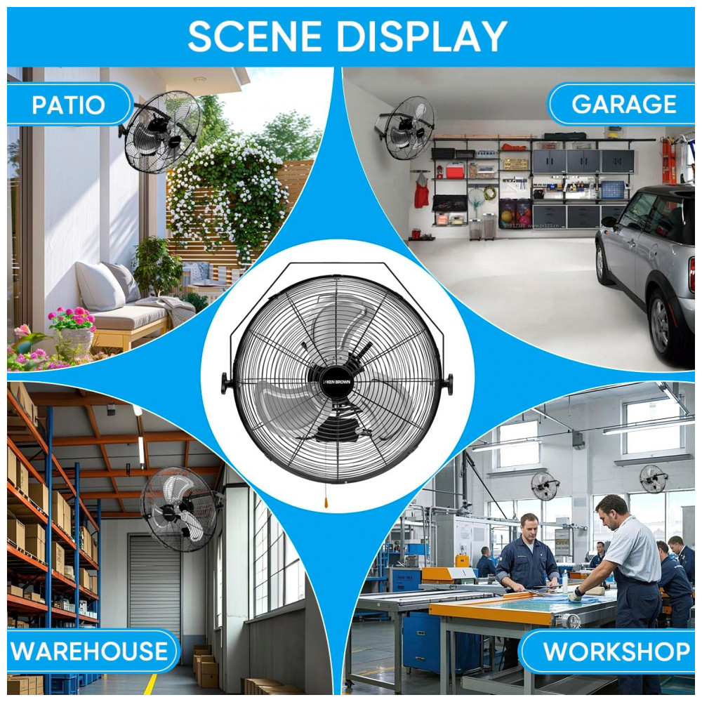 Garanta uma ventilação potente e eficaz com o ventilador de parede KEN BROWN de 45 cm!