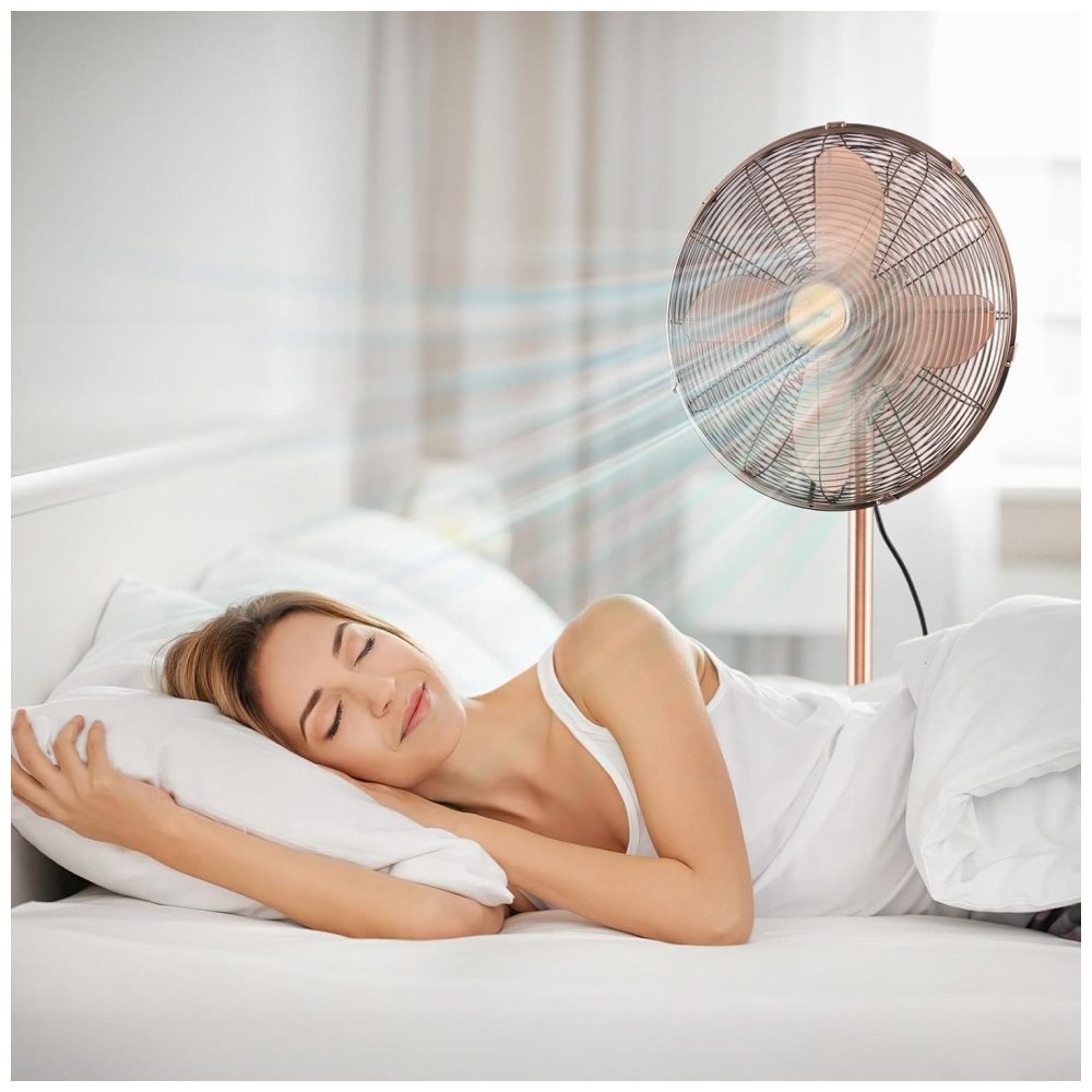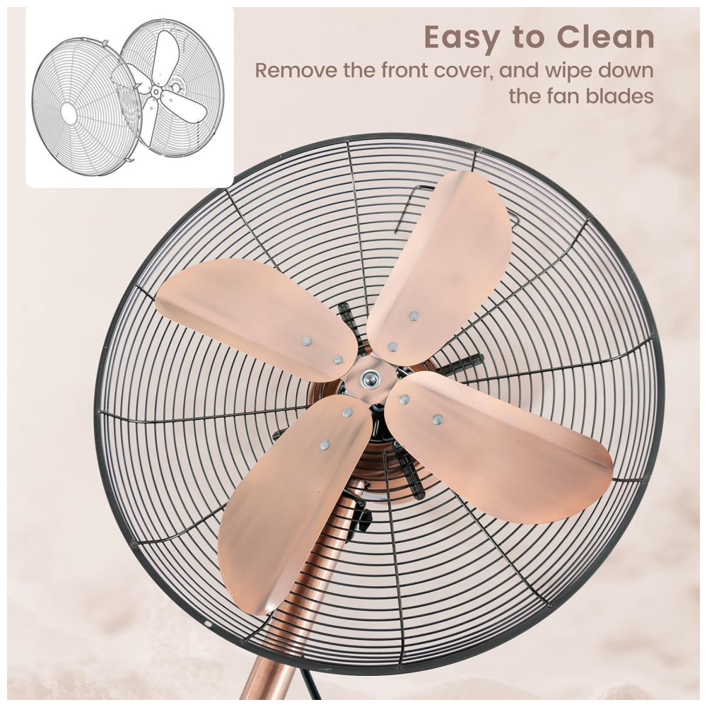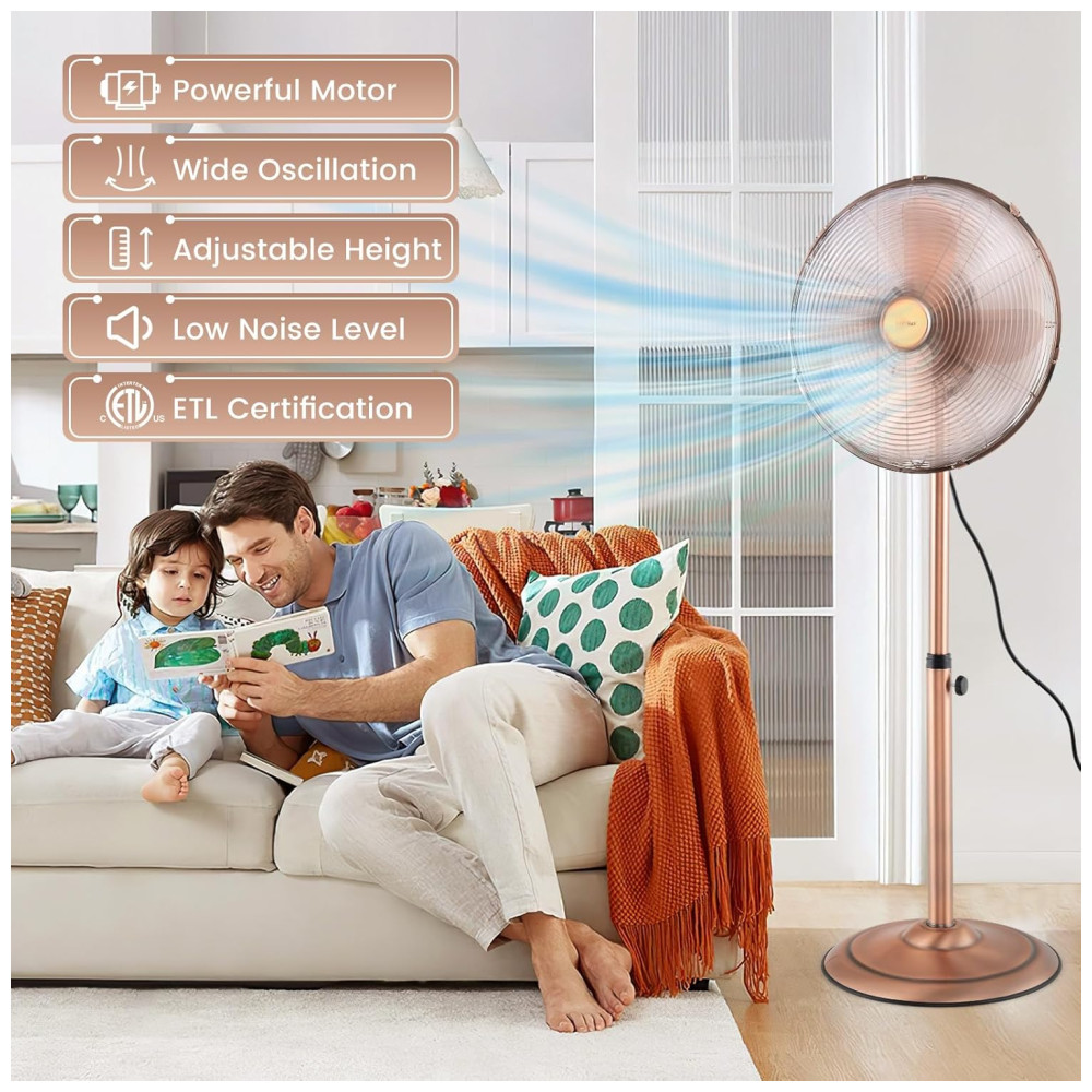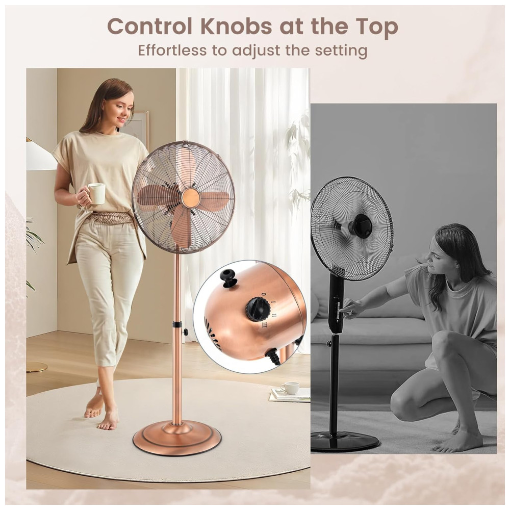 Ventilador de Pedestal Oscilante de Metal Silencioso e Potente com 3 Velocidades e Ajuste de Altura 110V COSTWAY Cobre