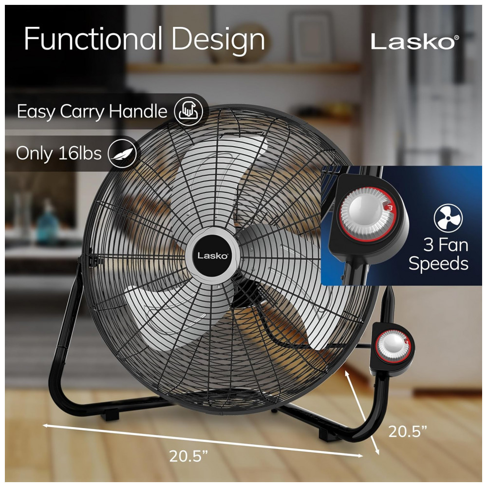 Apresentamos o Ventilador Lasko 20″, um ventilador de alta velocidade que combina versatilidade e potência para oferecer o melhor desempenho em resfriamento. Com um design robusto e funcionalidades práticas, ele é a escolha ideal para garagens, porões, academias e muito mais.