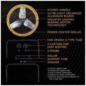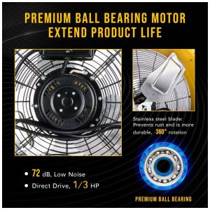 CONSTRUÇÃO RESISTENTE: Fabricado em alumínio durável com estrutura de aço revestido a pó, grade resistente à ferrugem e hélices de alumínio com carcaça de aço pesado. Motor de rolamento de esferas de alta qualidade para maior durabilidade.