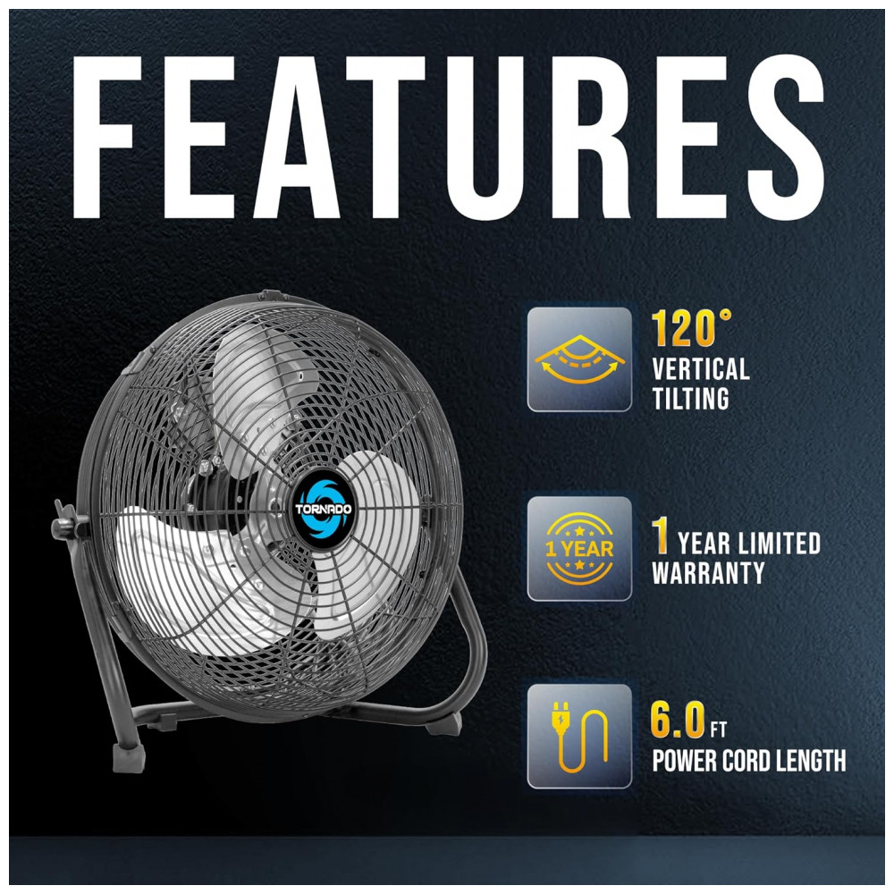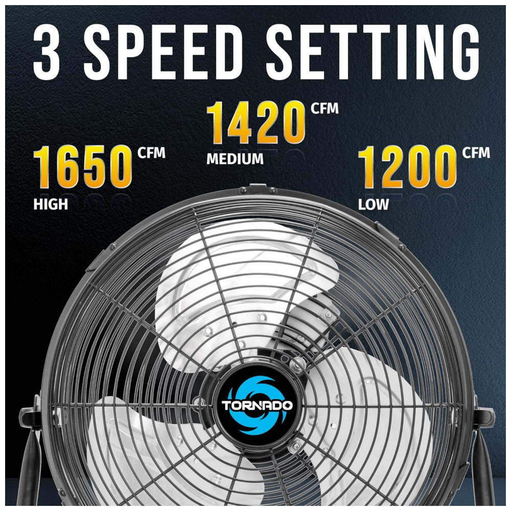 O ventilador de piso Tornado 30,48 cm é uma solução eficaz para ambientes industriais, comerciais e residenciais que demandam ventilação portátil e ajustável. Com três níveis de velocidade que proporcionam fluxo de ar de até 1650 pés cúbicos por minuto (CFM)(aproximadamente 46,7 metros cúbicos), permite a personalização da circulação para conforto direcionado.