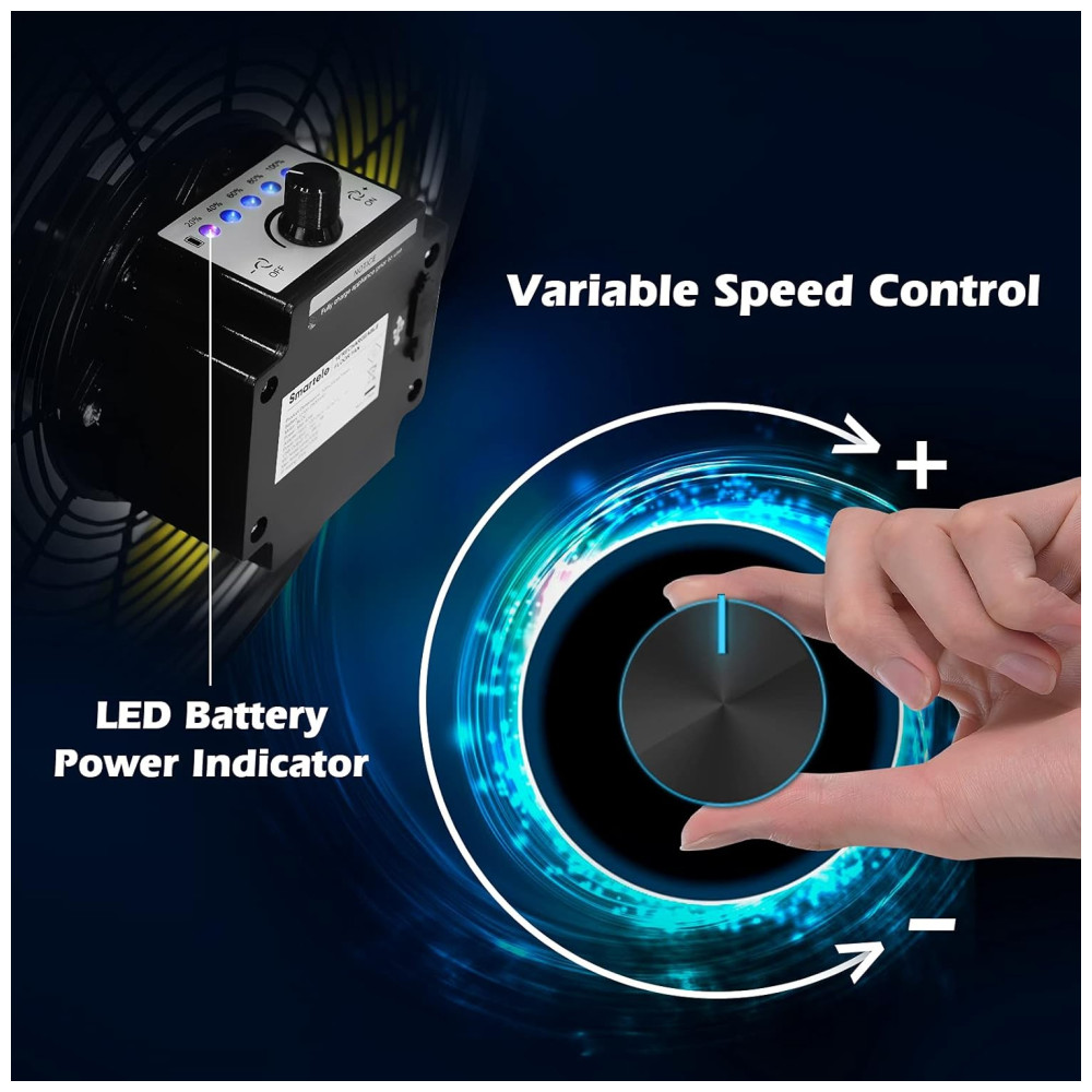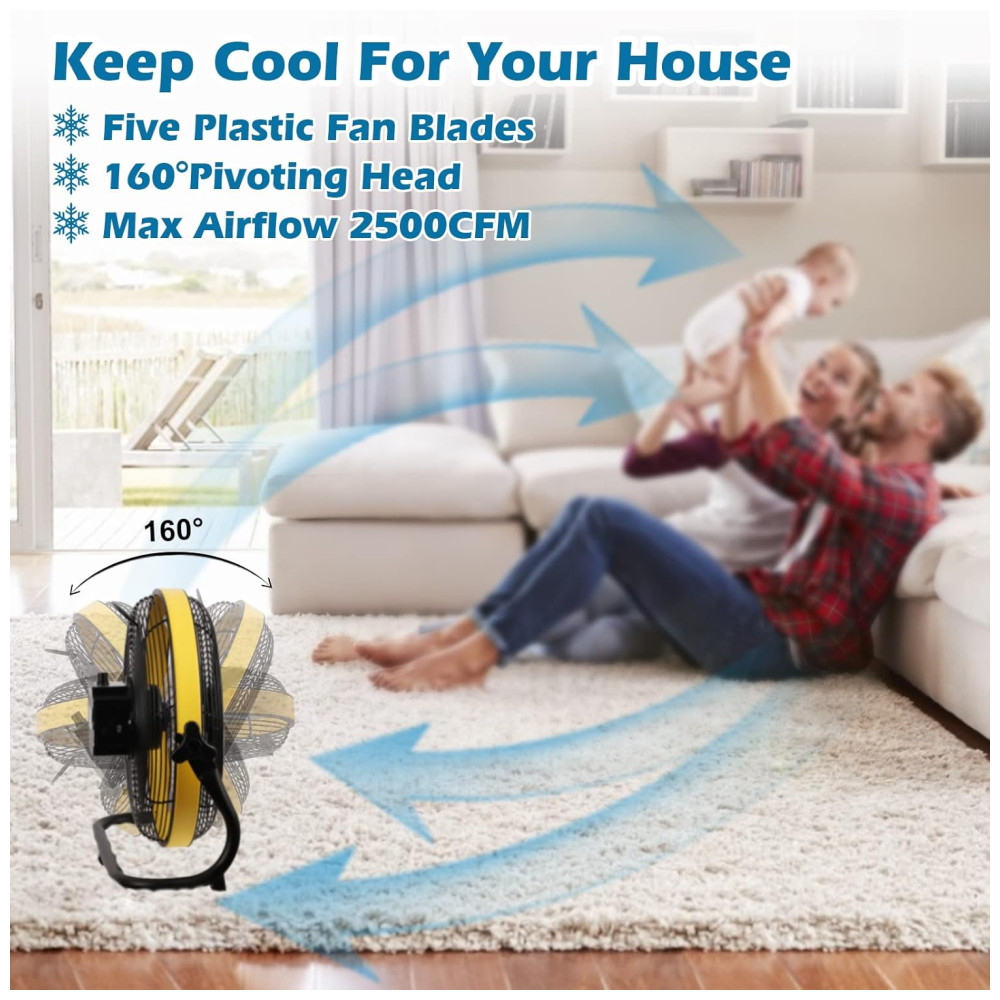 Circulação de Ar Poderosa: Com uma cabeça ajustável de 160° e motor DC sem escova de cobre puro, este ventilador proporciona um fluxo de ar de alta performance de até 2500 m³/h, com maior durabilidade. Mantenha-se fresco em qualquer lugar – seja na garagem, armazém, celeiro, academia ou ao ar livre.