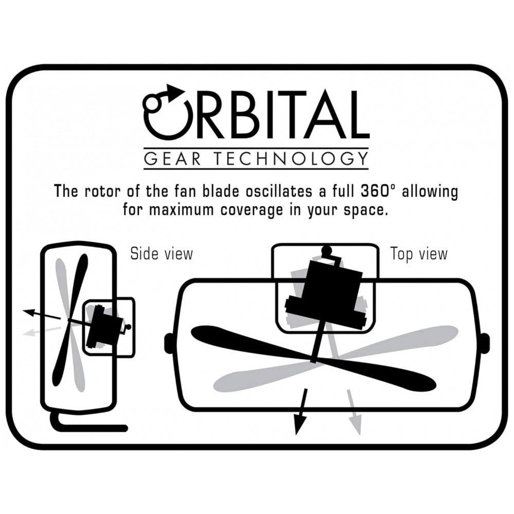 Oscilação de 360 graus: Graças à tecnologia orbital de engrenagem, o ventilador oferece cobertura máxima, oscilando em 360 graus e distribuindo o ar de maneira uniforme por todo o ambiente.
