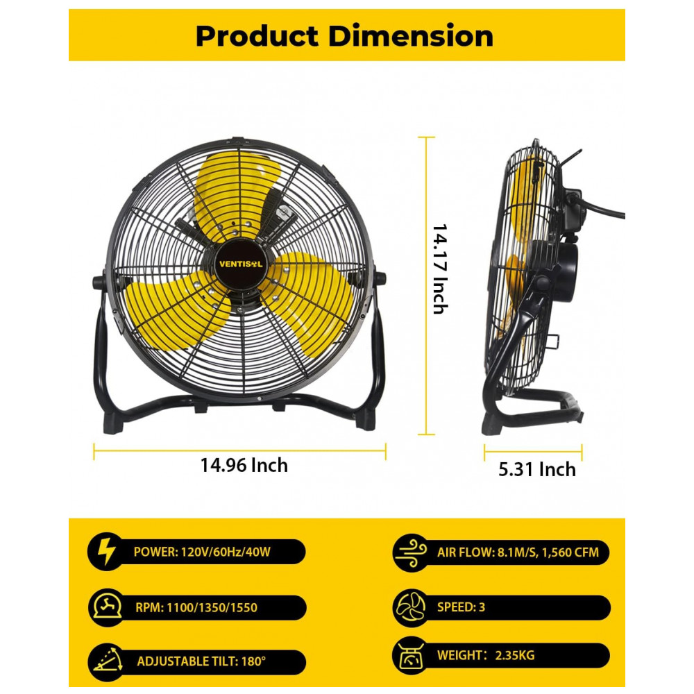 Construção robusta para durar: Totalmente fabricado em metal e revestido com pintura preta, o ventilador VENTISOL de 30 cm é altamente resistente. O motor premium com rolamentos garante durabilidade, enquanto as almofadas de borracha ajudam a manter a estabilidade, reduzindo as vibrações.