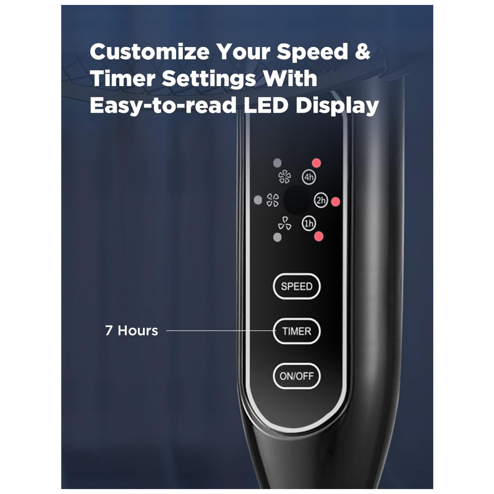NOVA VERSÃO: O ventilador de pedestal PELONIS foi aprimorado com um motor mais potente e hélices de alta qualidade, tornando o resfriamento mais eficiente e econômico. Com 3 configurações de velocidade e um timer de 7 horas com desligamento automático, este ventilador oferece resfriamento abrangente em áreas médias a grandes, gerando um fluxo de ar forte e mantendo um baixo nível de ruído em qualquer cômodo da sua casa.