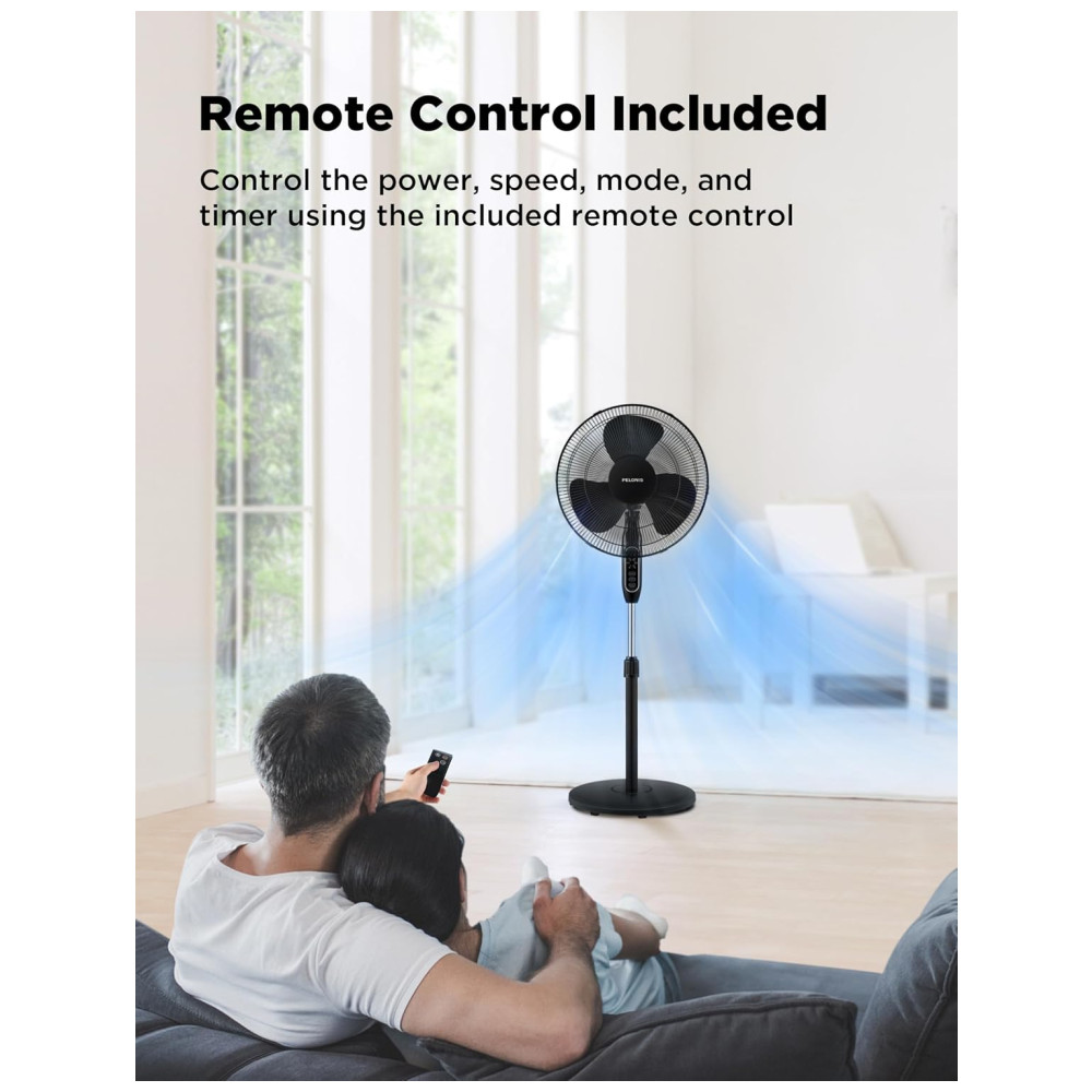 Apresentando o Ventilador de Pedestal PELONIS 40 cm com Controle Remoto, Oscilante, Timer de 7 Horas, 3 Velocidades e Altura Ajustável!
