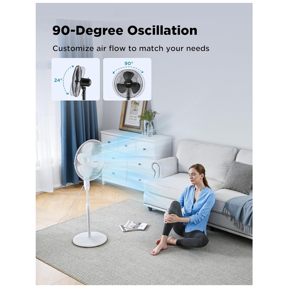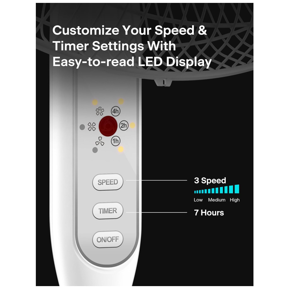Oscilação de Ângulo Amplo: Com um ângulo de oscilação de 85°, é versátil para uso individual ou para toda a família. A cabeça inclinável permite direcionar o fluxo de ar entre o chão e o teto, acelerando a circulação e resfriando rapidamente o ambiente, aumentando seu conforto.