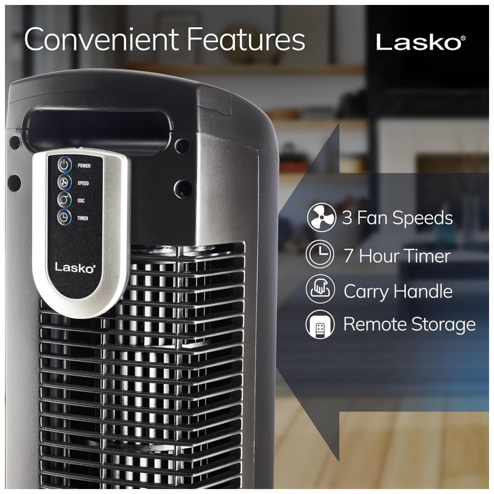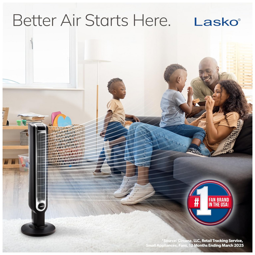 Com uma capacidade de fluxo de ar de 6.766 L/min, o Ventilador de Torre Lasko de 91 cm é a solução perfeita para manter sua casa fresca e confortável o dia todo!