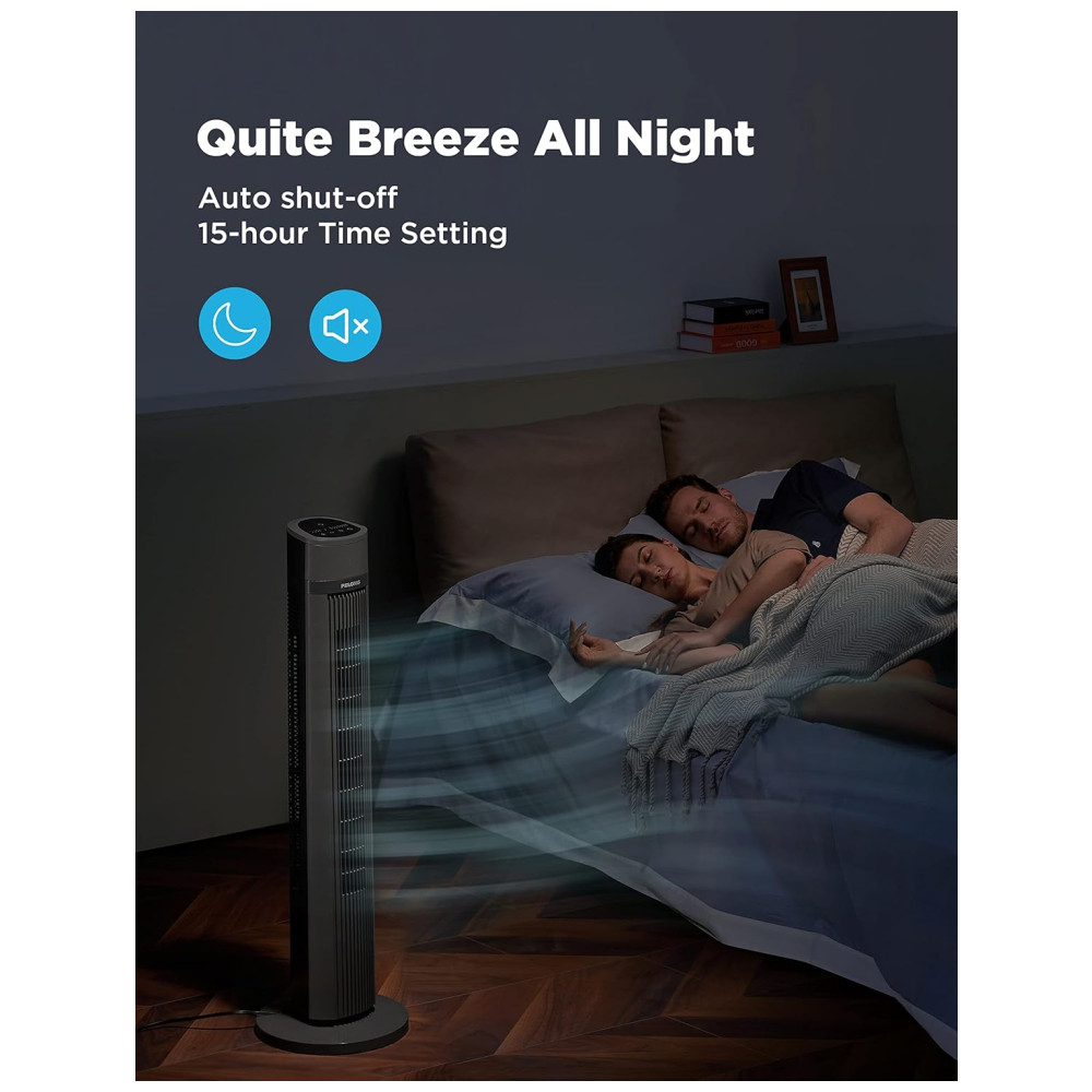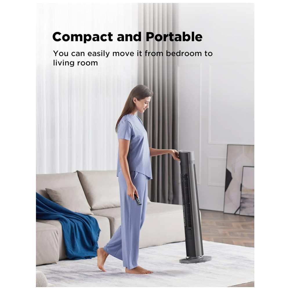 DESIGN QUE ECONOMIZA ESPAÇO: Leve e compacto, este ventilador torre é ideal para o quarto, cozinha, sala de estar e escritório. Além disso, ele conta com um plugue de segurança com fusível, que protege contra sobretensões e picos de energia.