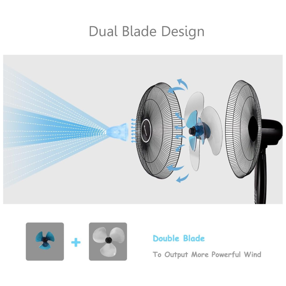 Lâminas Duplas Silenciosas: O design com lâminas duplas utiliza lâminas grandes e pequenas para criar uma brisa completa e satisfatória. Com um total de 6 lâminas e uma cabeça oscilante, o ventilador circula o ar fresco de maneira potente. As lâminas duplas mantêm o vento mais concentrado nas áreas próximas e mais difuso nas áreas distantes, tudo isso de maneira silenciosa e pensada para seu conforto.