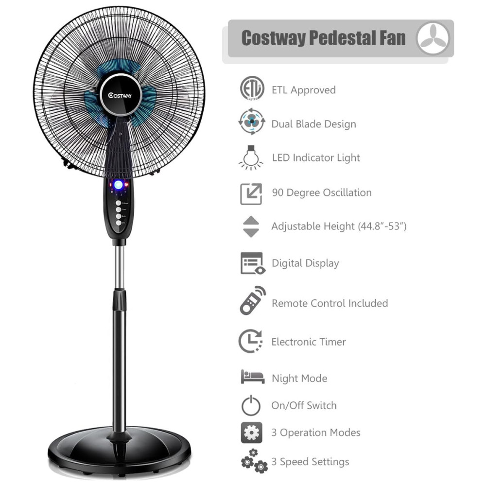Este ventilador de pedestal COSTWAY combina potência, segurança e praticidade em um design moderno e eficiente!