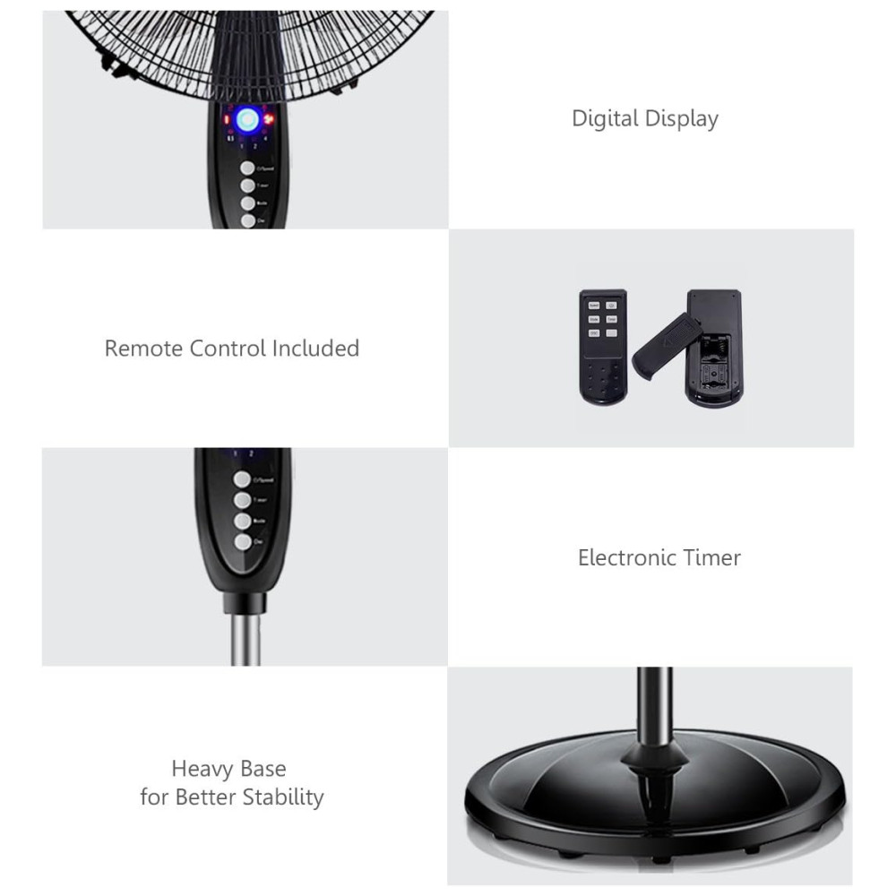 Alta Tecnologia: Com tecnologia avançada, este ventilador de pedestal permite que você controle as funções tanto manualmente quanto por controle remoto, com alcance de até 1 metro. O display digital LCD facilita o controle das configurações e do funcionamento do ventilador.