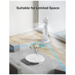 Projeto de oscilação e economia de espaço Para um resfriamento mais rápido, use o recurso de oscilação grande angular de 60 para fornecer uma cobertura mais ampla do fluxo de ar para aumentar a circulação interna. Design de torre com economia de espaço para se encaixar perfeitamente em cantos e áreas com espaço limitado, sem sacrificar a circulação de ar, conforto e facilidade.