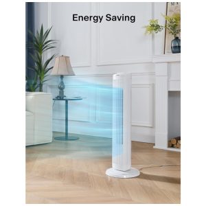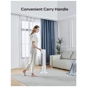 Potente e portátil O ventilador de torre PELONIS fornece resfriamento potente e eficaz enquanto economiza energia. Ele vem com uma alça interna conveniente para fácil portabilidade