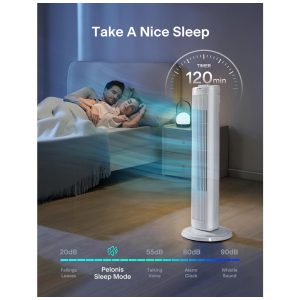 Ventilador silencioso de 3 velocidades Apresentando 3 velocidades baixo médio alto, o ventilador de torre Pelonis permite que você personalize seu fluxo de ar e opções de resfriamento. O baixo ruído operacional é ideal para sua casa, proporcionando um sono tranquilo, este ventilador oscilante é perfeito para seu quarto, sala de estar e escritório doméstico.