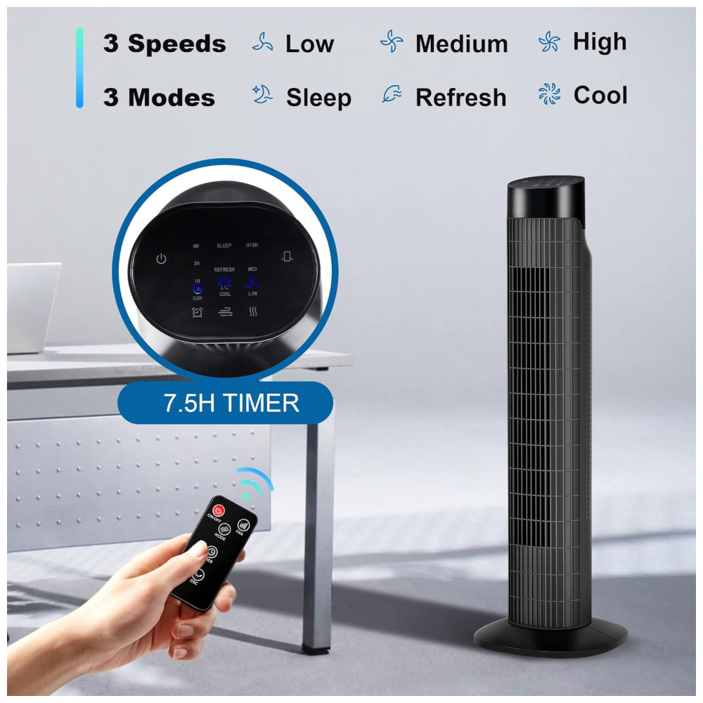 Ventilador de torre AKIRES com controle remoto 3 velocidades 3 modos ventilador oscilante resfriamento silencioso ventiladores de piso portáteis sem lâmina com temporizador de desligamento automático de 0 75 H para quarto escritório sala de estar