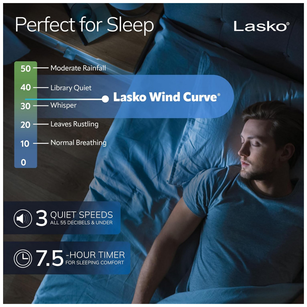 Ventilador com Controle Remoto: O ventilador Lasko de 107 cm é ideal para quartos, oferecendo 3 velocidades ajustáveis e controle remoto para ajuste da oscilação, configurações e timer, proporcionando noites frescas e tranquilas de sono.