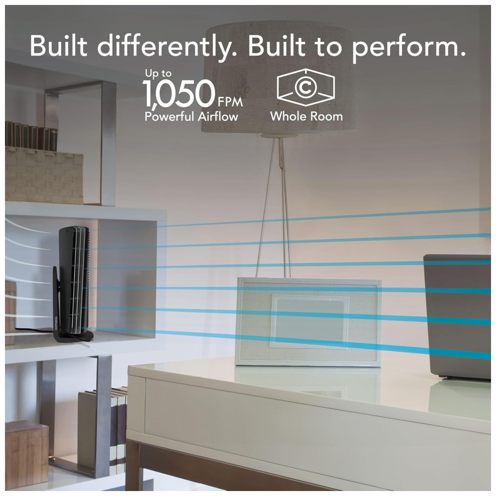 Fluxo de Ar Contínuo – Utiliza a exclusiva tecnologia Versa-Flow da Vornado para garantir a circulação completa do ar em pequenos ambientes. A saída de ar transversal cria um amplo fluxo constante, eliminando a necessidade de uma base instável.
