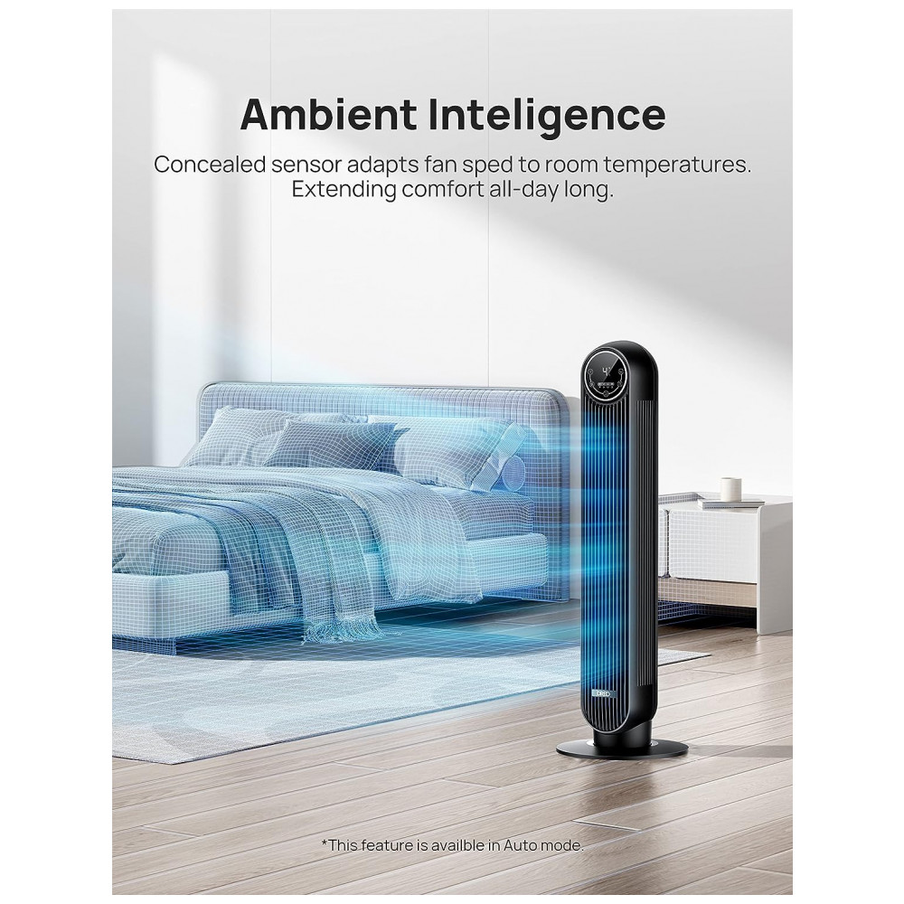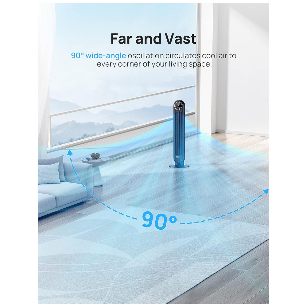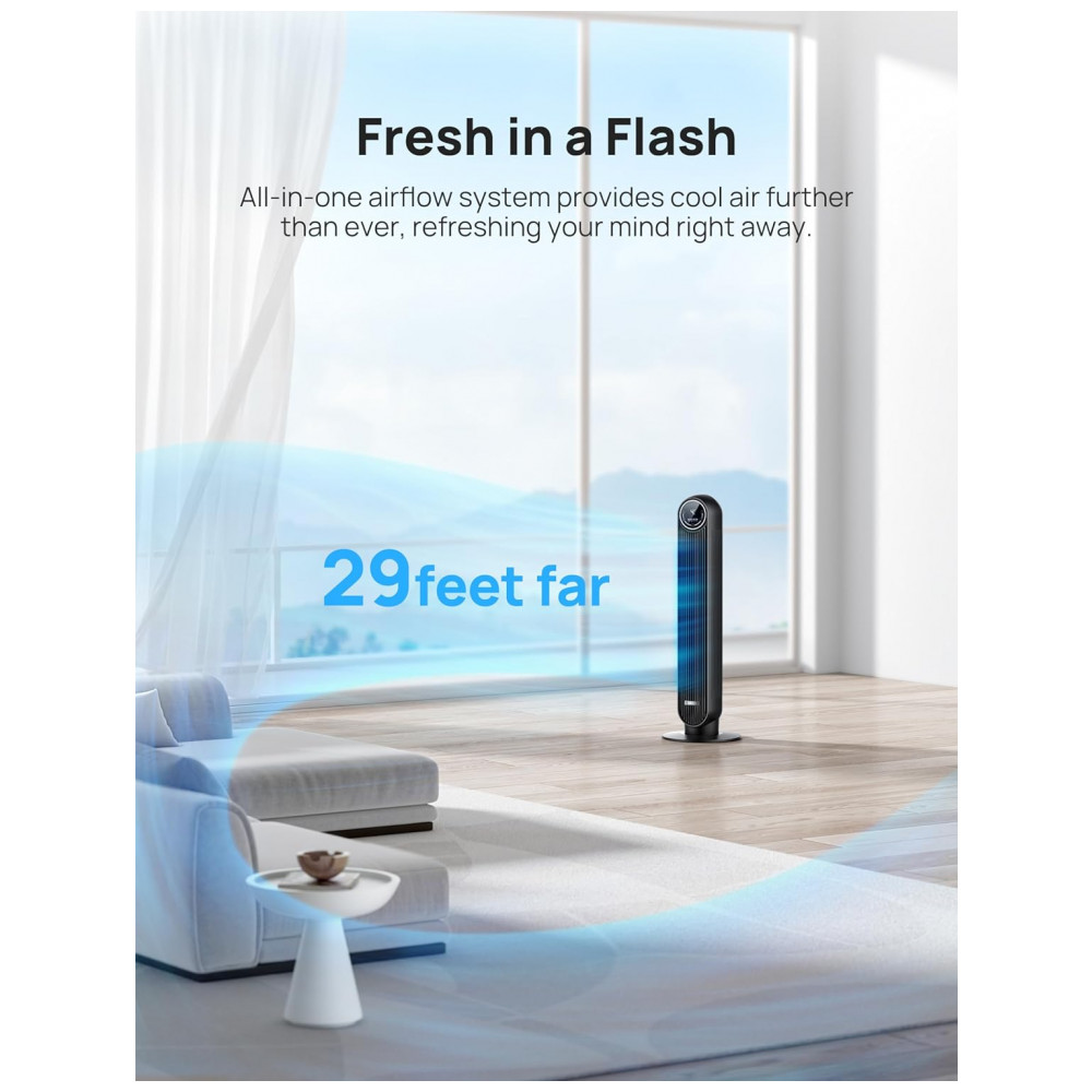 A combinação do sistema de fluxo de ar completo da Dreo com um motor elétrico superpotente entrega ventos refrescantes e de alta velocidade. Este ventilador de torre compacto de 91,4 cm revitaliza rapidamente cada canto do seu espaço, atingindo velocidades de até 7,6 m/s.
