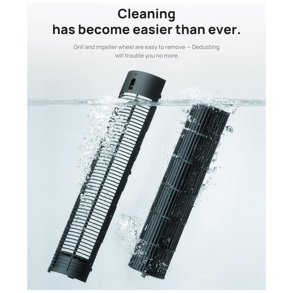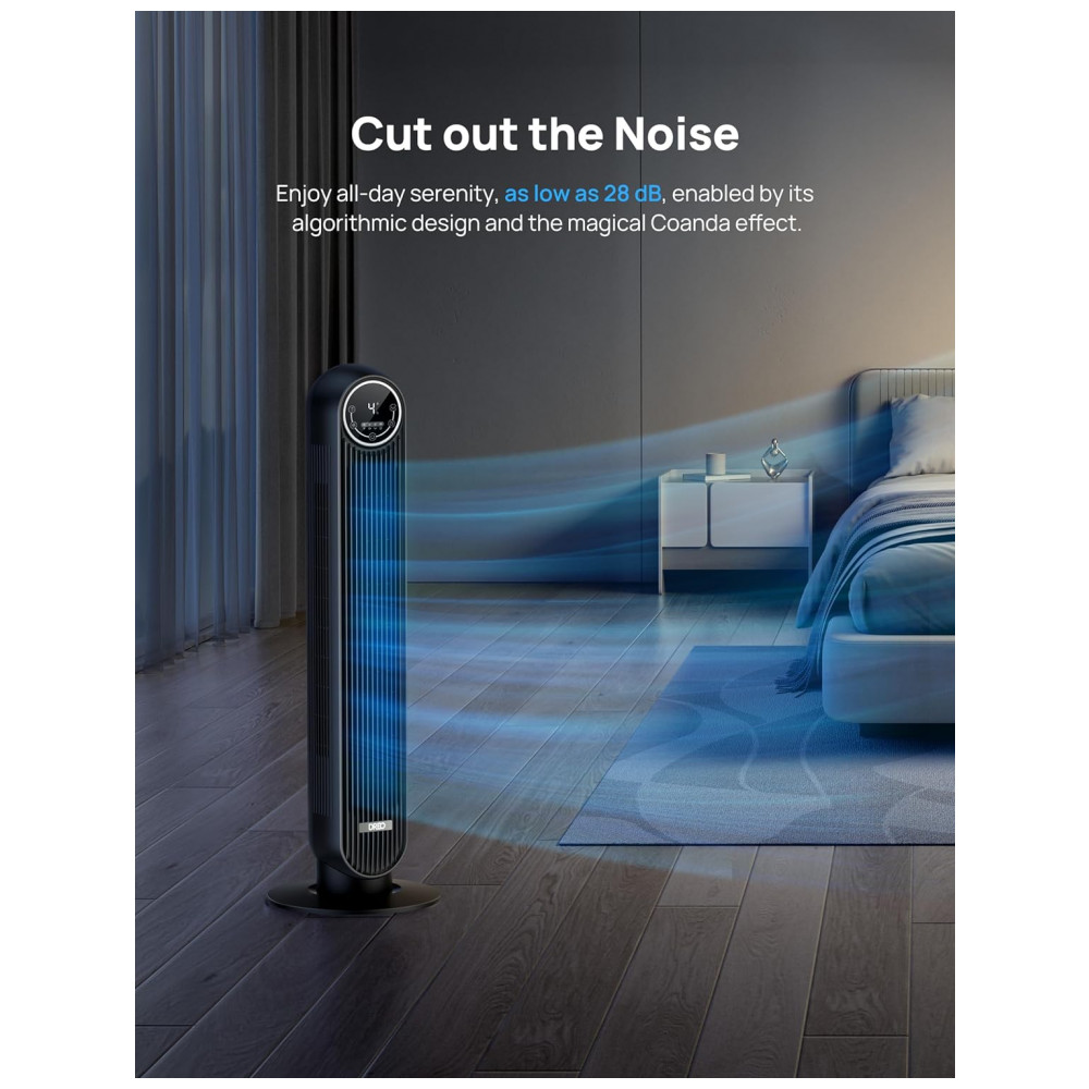 Silencioso e Confortável: Desfrute de serenidade e conforto ao longo do dia, graças ao seu design de hélice algorítmica e ao efeito Coanda. Com desligamento automático do display, modo silencioso durante o sono, timer de 8 horas e fluxo de ar suave, você sempre terá uma noite de sono reparadora.
