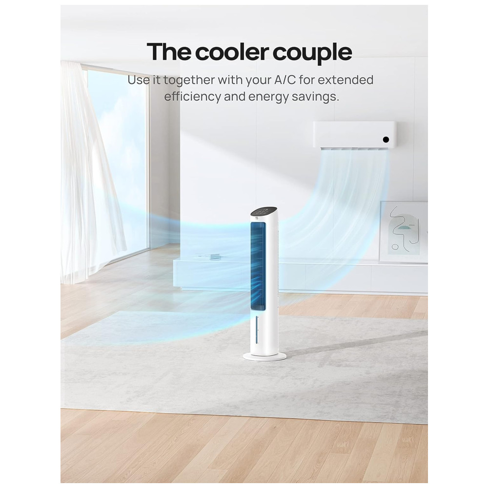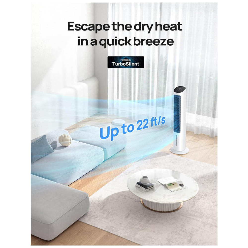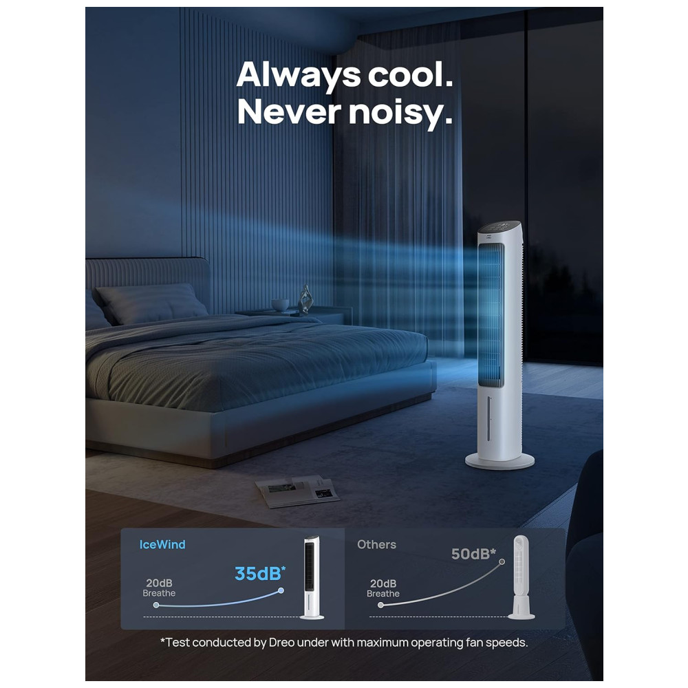 Ventilador de Torre com Ar Frio Resfriador Evaporativo Ventilador para Quarto com Oscilação 80° Pacotes de Gelo Controle Remoto 3 Modos Dreo Branco