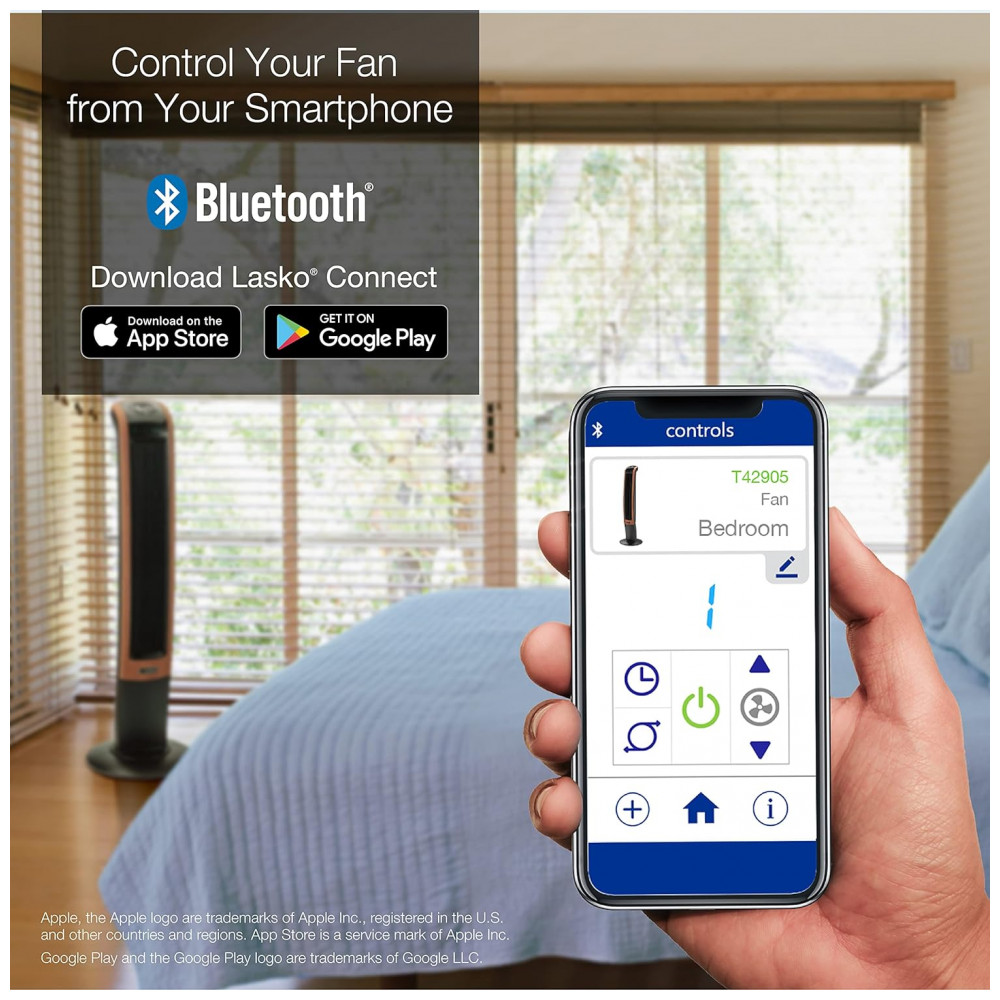 Experimente o conforto de um ambiente fresco com o Ventilador Torre Lasko Wind Curve, agora com tecnologia Bluetooth que permite controlar o ventilador diretamente pelo seu smartphone, eliminando a preocupação de perder o controle remoto. Basta baixar o aplicativo Lasko Connect na App Store ou Google Play e seguir as instruções para começar a usar.