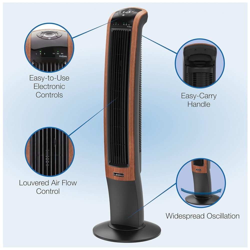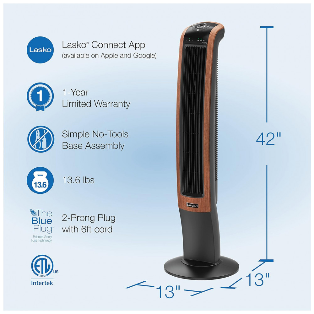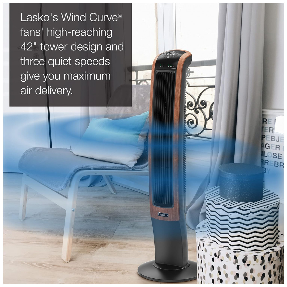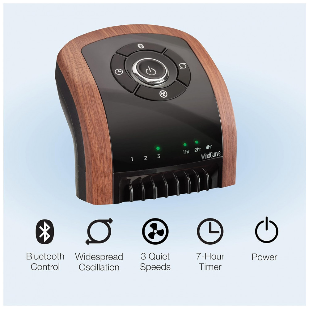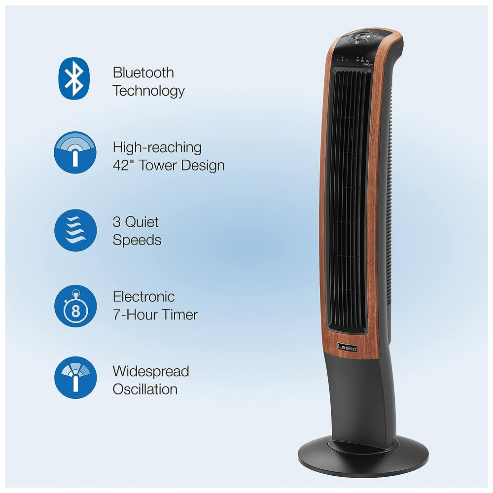 Descubra o Ventilador Torre Lasko Wind Curve 107 cm com Bluetooth, 3 Velocidades Silenciosas, Madeira, T42905