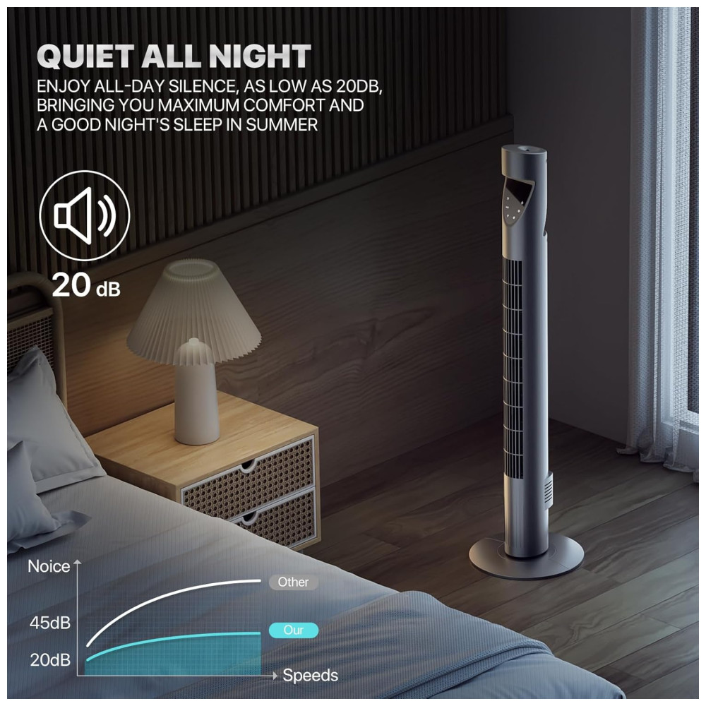 Ultra Silencioso: Equipado com um motor silencioso, este ventilador de torre funciona com um ruído baixíssimo, de apenas 20 dB. Aproveite um ambiente fresco e relaxante sem o incômodo de motores barulhentos, ideal para estudar, trabalhar ou dormir tranquilamente.