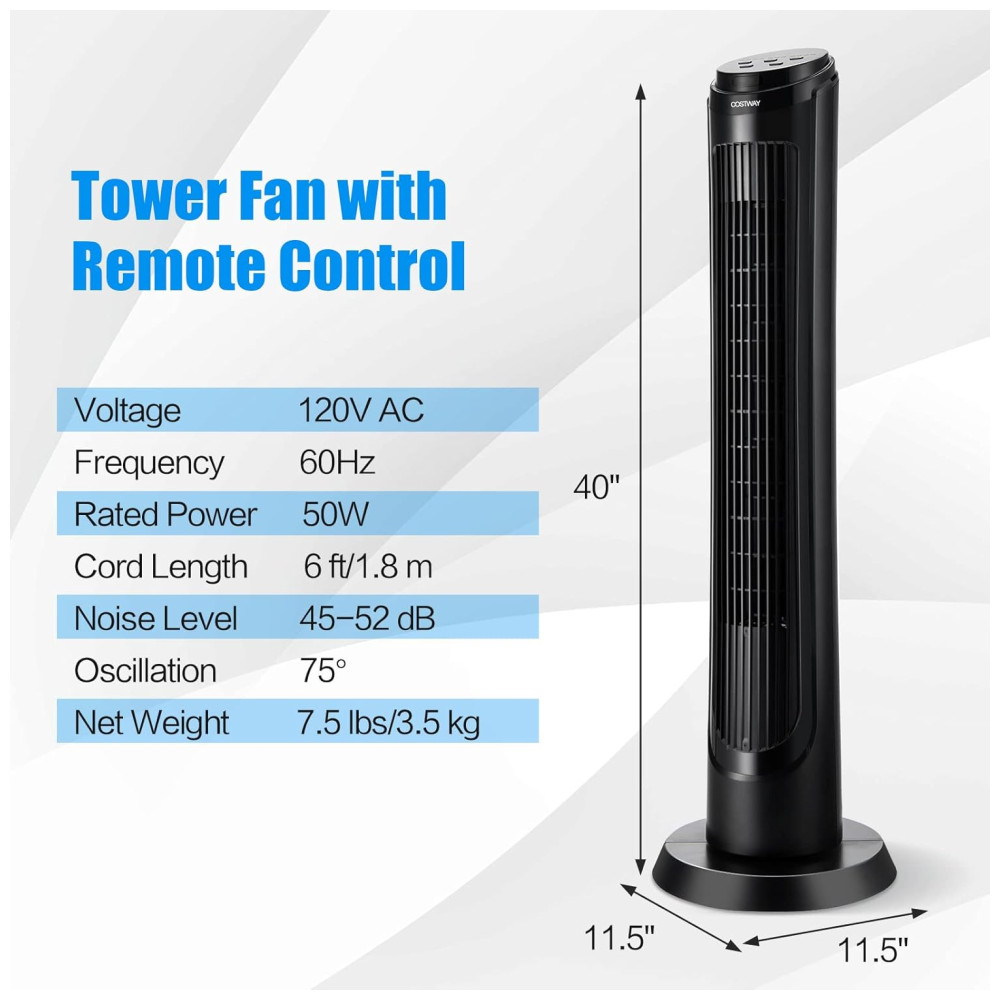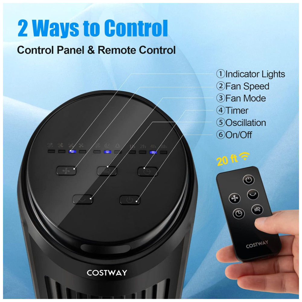 Este ventilador torre da COSTWAY combina praticidade, segurança e eficiência para oferecer o melhor em conforto e frescor em qualquer espaço.