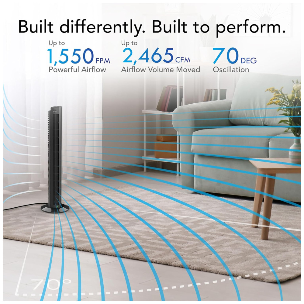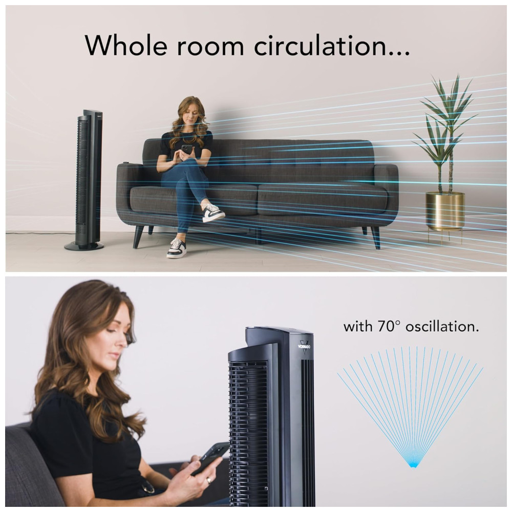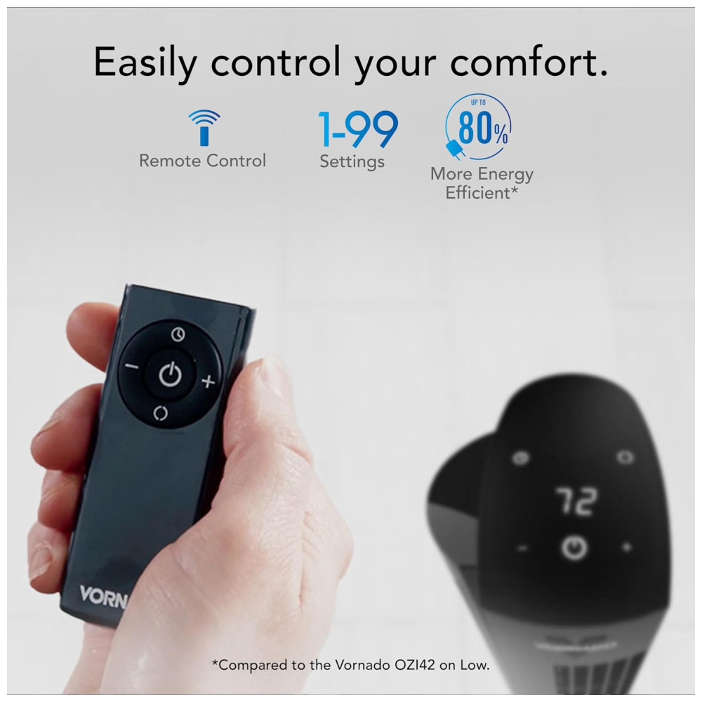 O Ventilador de Torre OZI42DC da Vornado é a escolha ideal para quem procura um fluxo de ar potente e direcionado. Com uma oscilação de 70 graus, ele é capaz de distribuir o ar de forma eficaz por todo o ambiente, proporcionando um resfriamento consistente e robusto em qualquer cômodo, seja no quarto, na sala de estar ou no escritório.