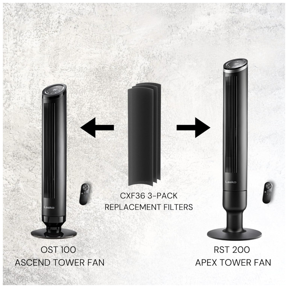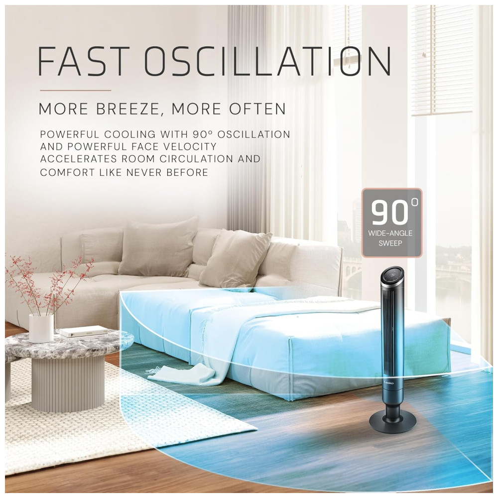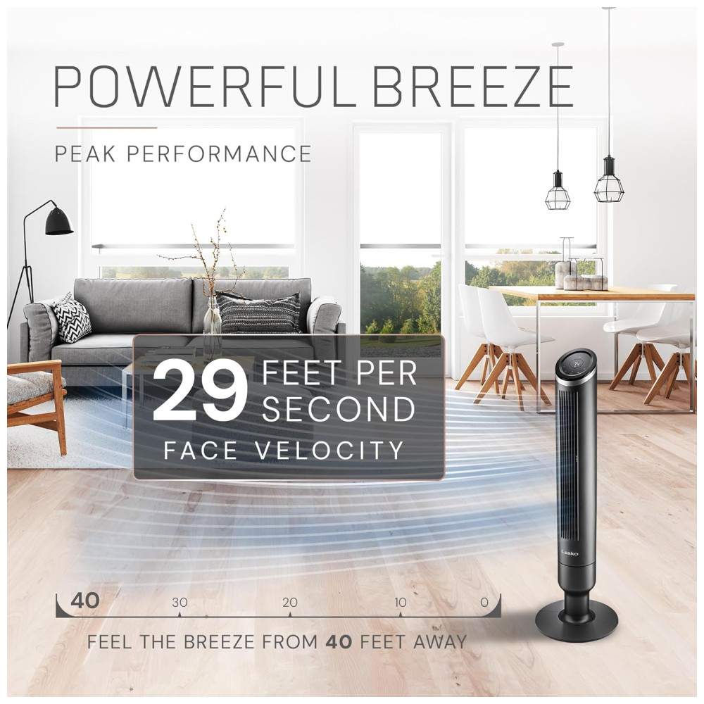 Ventilador de Torre com Controle Remoto Distância Máxima do Ar 8 Metros 6 Velocidades Temporizador de 24H e Oscilação de 90° 110V 54W Lasko RST200 Preto