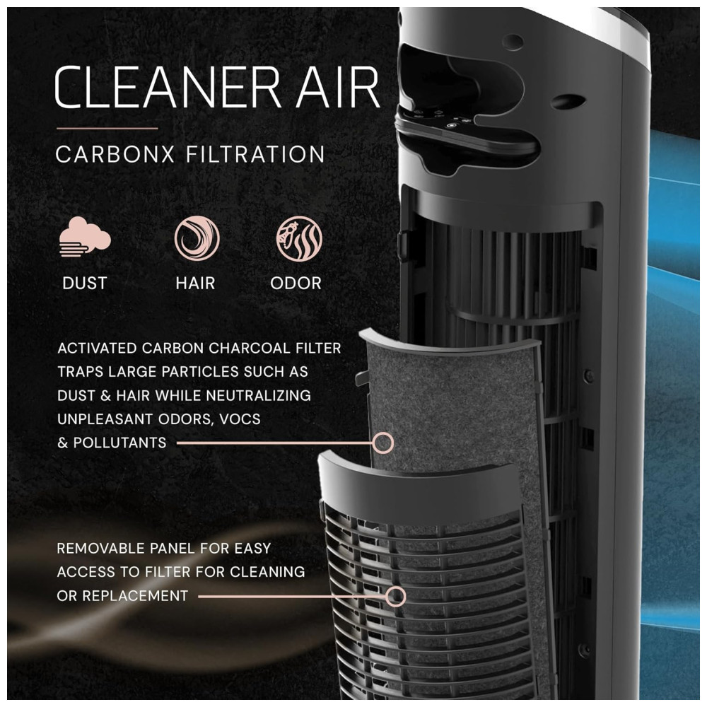 Além de seu poderoso resfriamento, o Apex contribui para a qualidade do ar com o filtro Carbon X, que elimina poeira, pelos de animais, odores e compostos orgânicos voláteis (VOCs). Com uma operação extremamente silenciosa, gerando uma brisa suave de até 29,0 dB, você pode desfrutar de tranquilidade e conforto em qualquer momento do dia. O recurso Child Lock integrado proporciona segurança adicional para famílias com crianças.