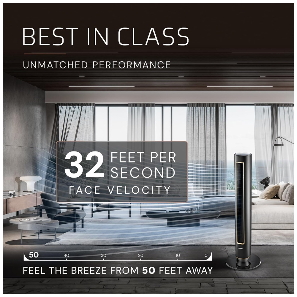 O ventilador de torre Lasko 101 cm de Altura Pinnacle DC Motor é uma excelente opção para quem busca um resfriamento eficiente e silencioso. Com um fluxo de ar impressionante de 450 CFM, ele consegue refrescar espaços de até 9 metros por segundo. Ideal para salas de tamanho médio, o Pinnacle circula o ar 28 vezes por hora e mantém um nível de ruído muito baixo, de apenas 24 dB em baixa velocidade.