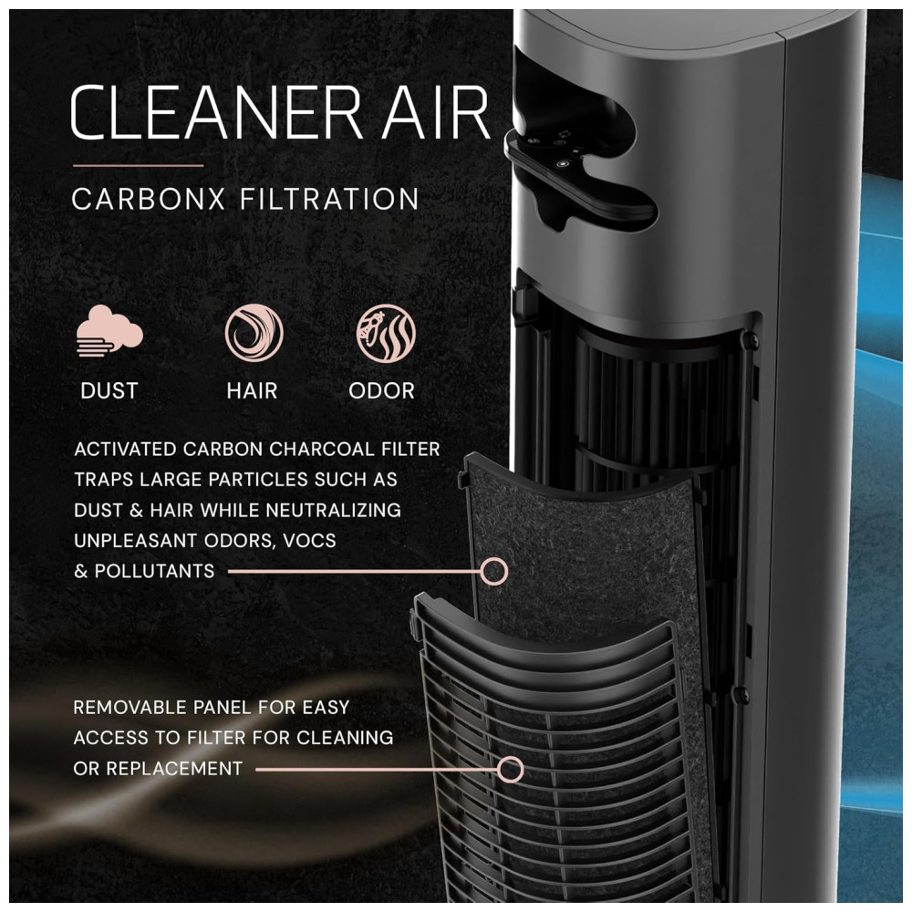 Este ventilador é equipado com um filtro Carbon X inovador, que captura partículas grandes como poeira e pelos de animais, além de neutralizar odores desagradáveis e compostos orgânicos voláteis (VOCs). Com a tecnologia WhisperForce DC, o Pinnacle é capaz de circular 30% mais ar enquanto consome 40% menos energia do que ventiladores tradicionais.
