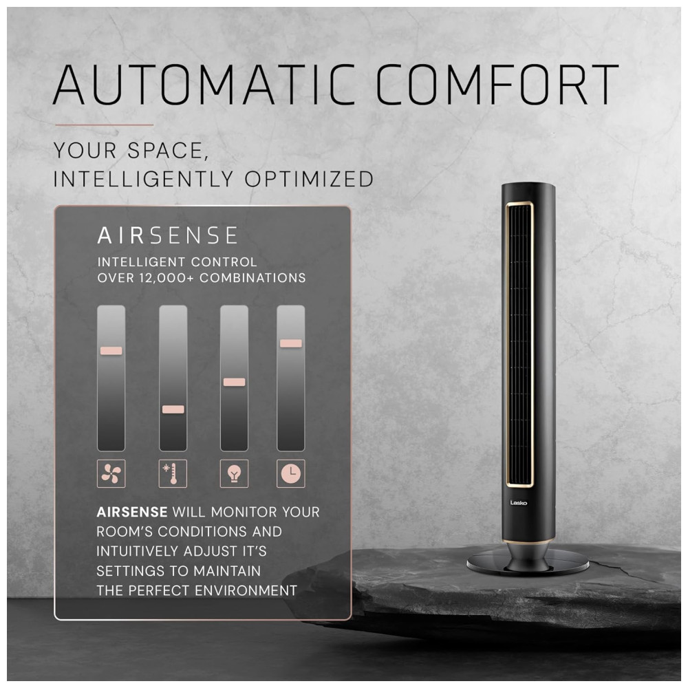 O Pinnacle também possui a tecnologia AirSense AI, que adapta o fluxo de ar ao ambiente por meio de quatro modos exclusivos: Personalizado, Automático, Suspensão e Natureza. Suas 12 velocidades silenciosas e de alto desempenho tornam-no adequado até para os espaços mais compactos. O modo automático com controle de termostato, a oscilação de 90 graus e o temporizador integrado oferecem máximo controle e conforto.