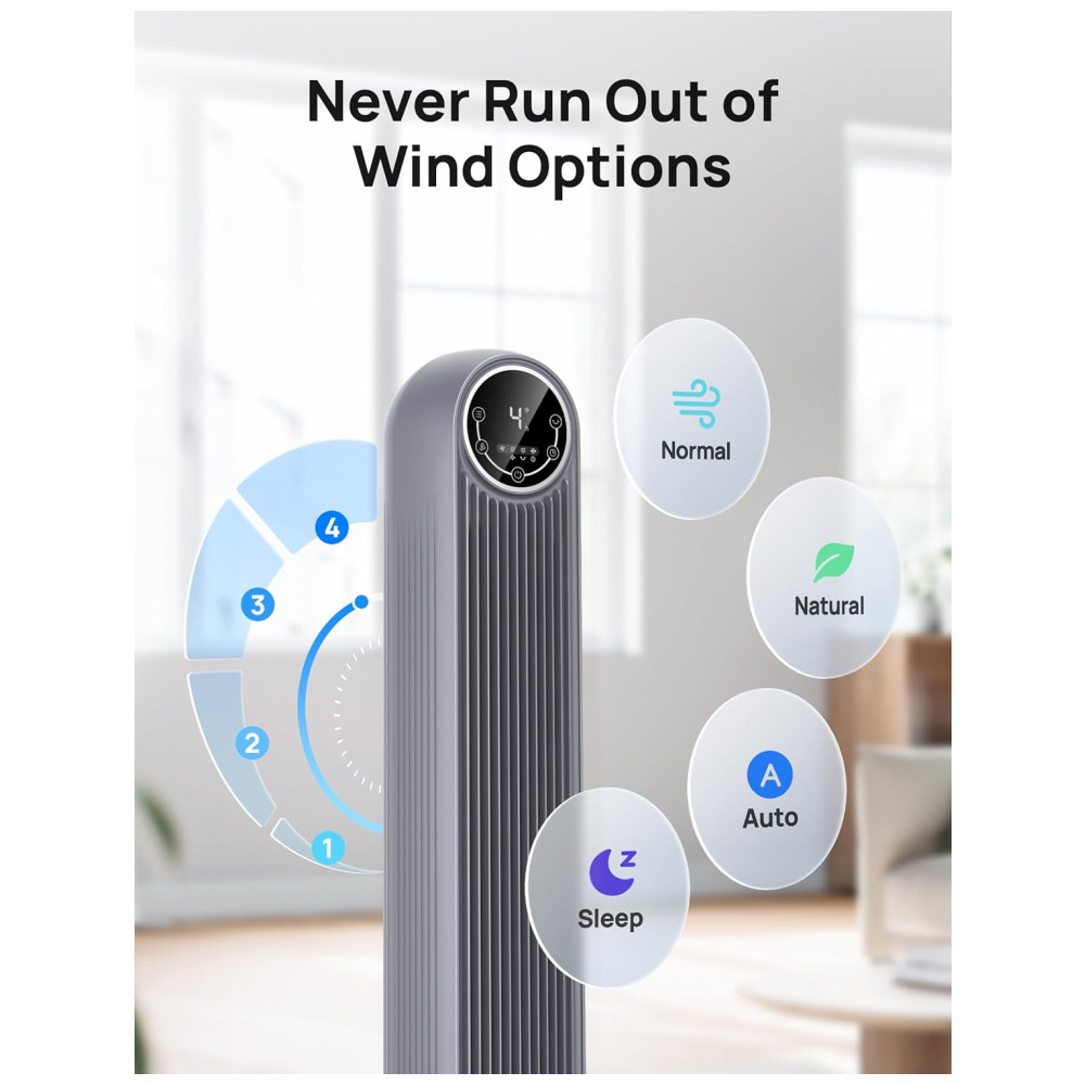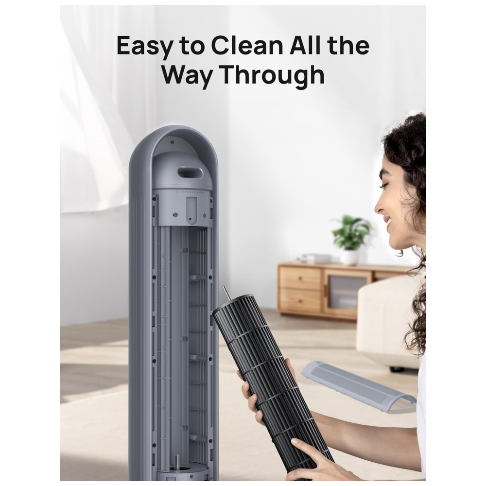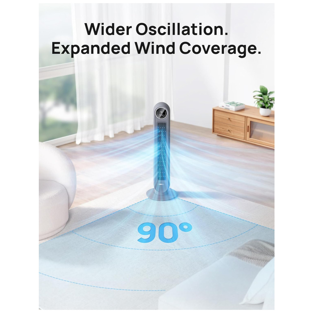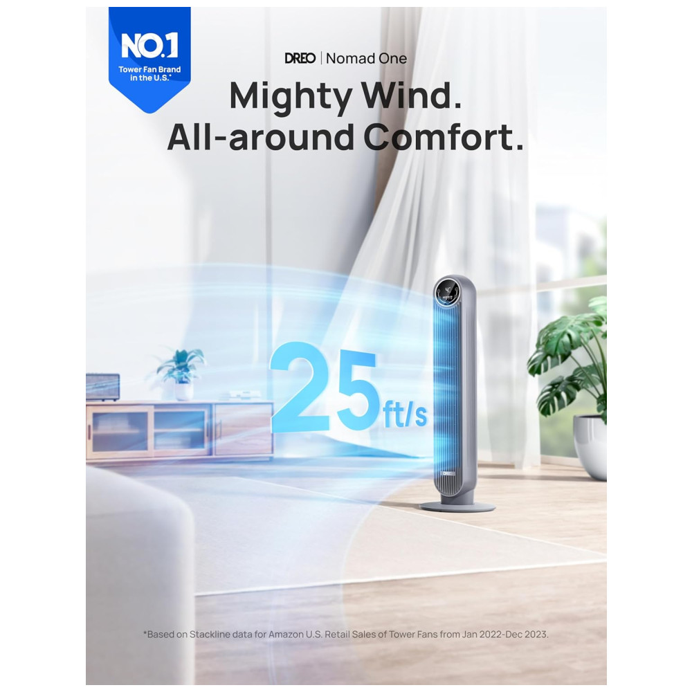 O ventilador de torre portátil Dreos Allinone é equipado com um motor elétrico supercarregado, oferecendo alta velocidade e resfriamento rápido. Com 36 polegadas/ 91 cm de altura, ele é compacto, mas capaz de refrescar rapidamente até 25 pés/ 7 metros de distância, proporcionando uma brisa fresca em todo o ambiente. O design do impulsor algorítmico e o efeito Conada garantem um fluxo de ar suave e silencioso, criando um ambiente de serenidade e conforto durante o dia, sem ruídos indesejados.