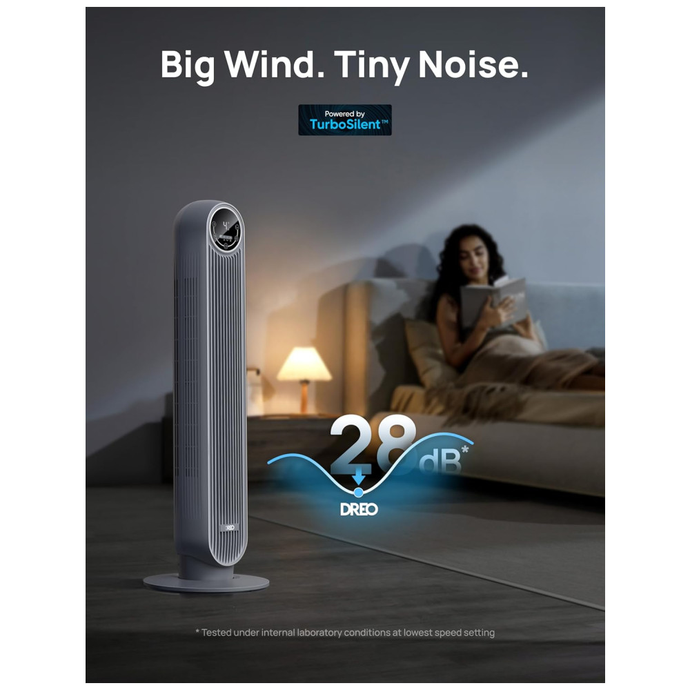 Ventilador de Torre com Controle Remoto Oscilação de 90° Temporizador de 8H e 4 Velocidades 110V Dreo Cinza