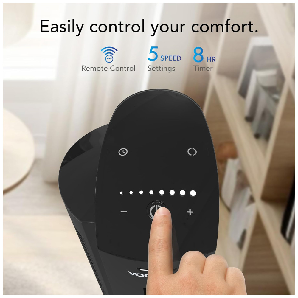 Ventilador de Torre com Controle Remoto Temporizador 5 Velocidades e Oscilação de 70º 110V 61W Vornado OZI42 Preto