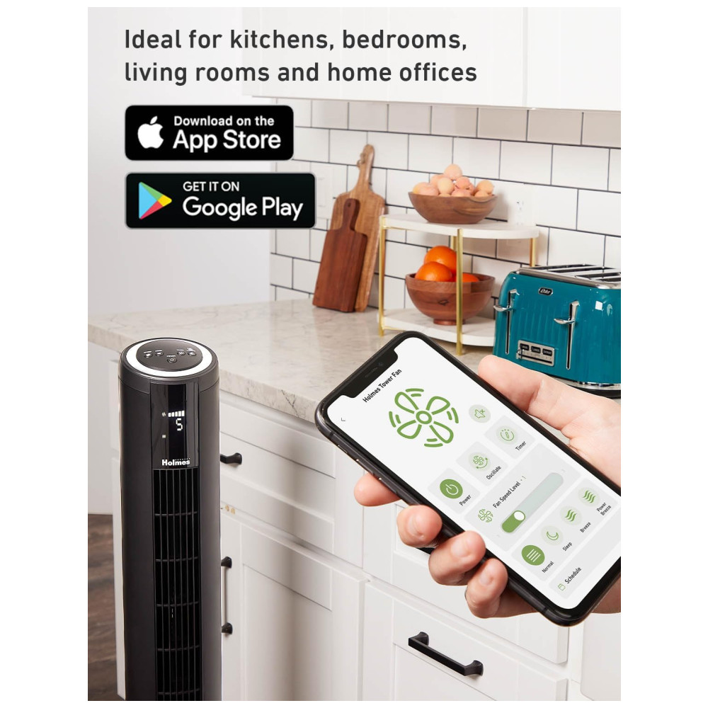 TECNOLOGIA INTELIGENTE: Baixe o aplicativo Holmes SmartConnect gratuito e use WI FI para controlar o ventilador da sua torre de qualquer lugar, a qualquer hora
