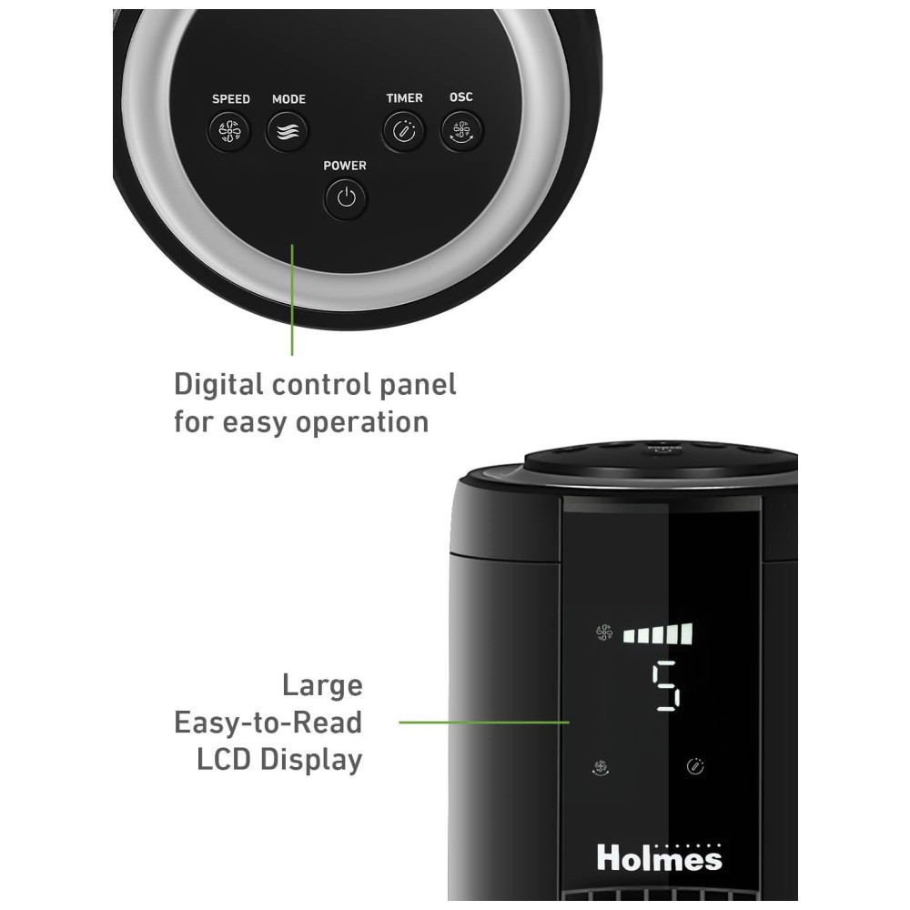 Ventilador de Torre com Tela Digital Controle de Voz Oscilação de 90 e 5 Velocidades 110V HOLMES Preto