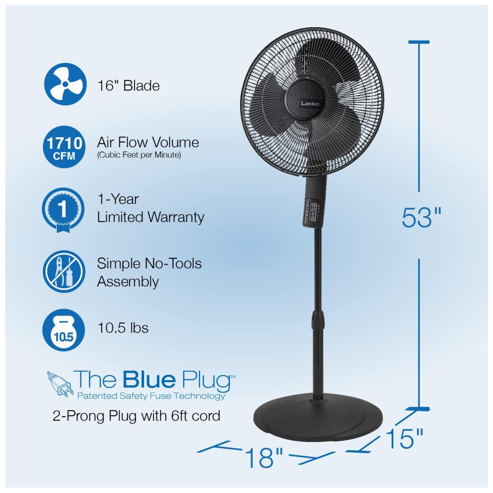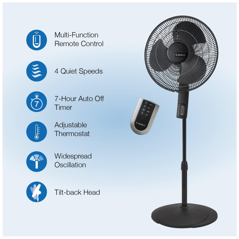 Apresentando o Ventilador de Pedestal Lasko S16612, 40 cm, Preto – Controle Remoto, Termostato, Timer e 4 Velocidades: