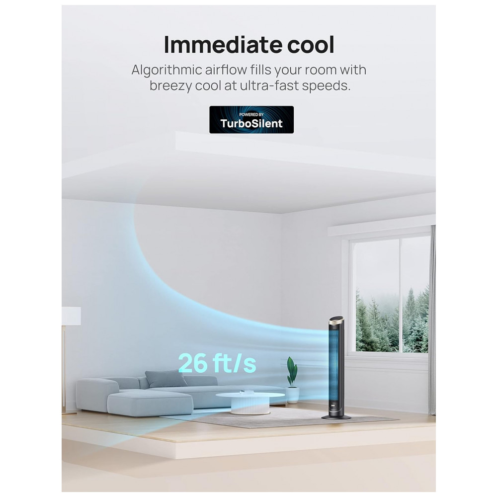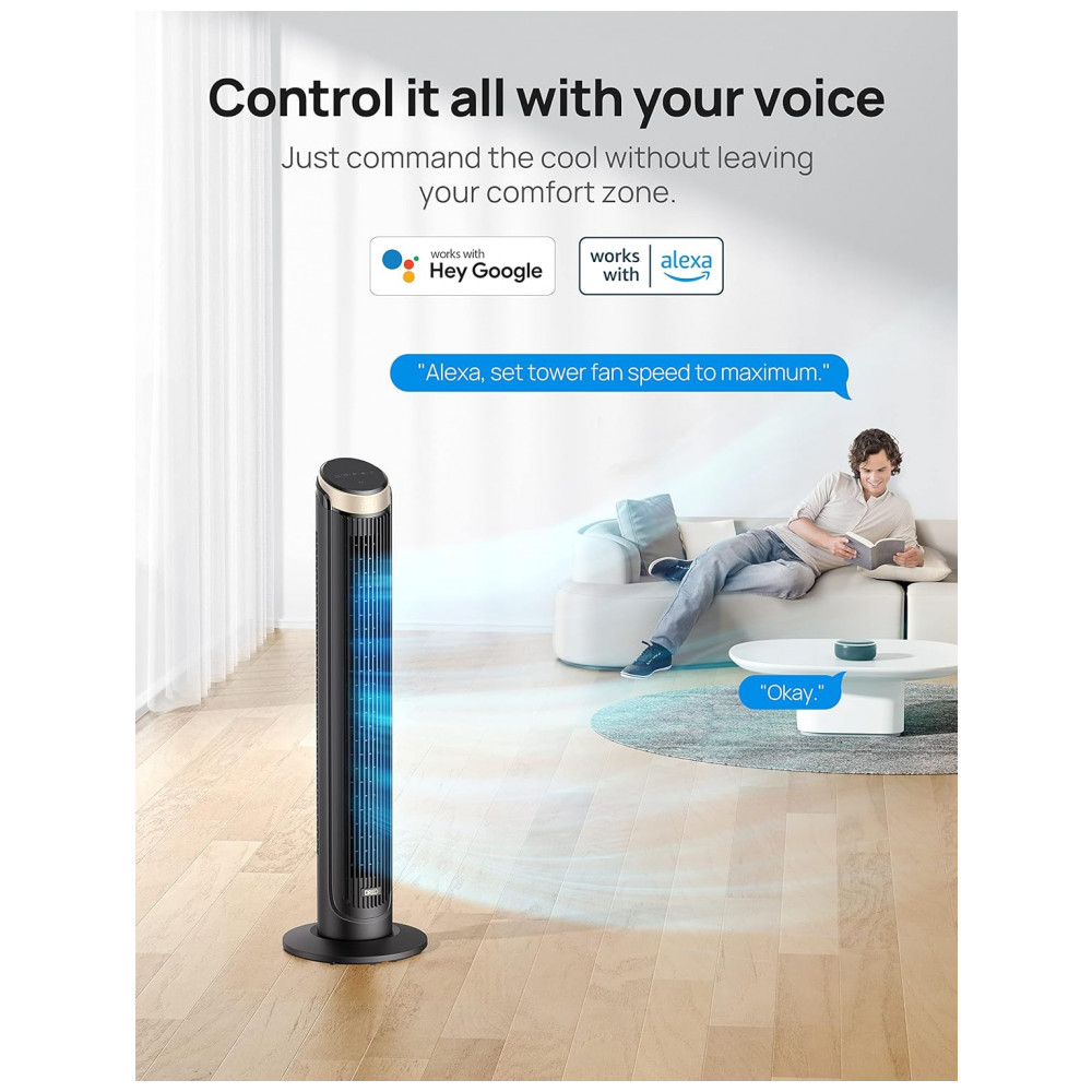 Experimente o conforto do controle inteligente com o Ventilador de Torre WiFi Dreo de 102 cm, ideal para refrescar seu espaço com eficiência e estilo.