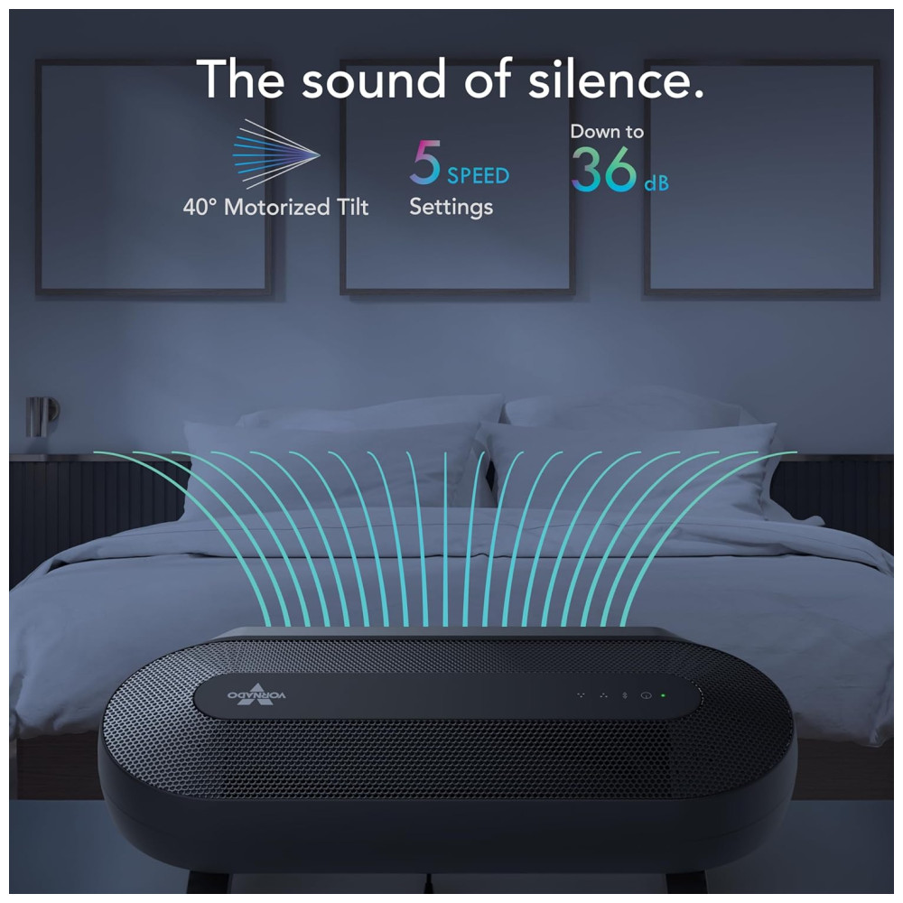 Ventilador de Torre Horizontal Estilo Moderno com Inclinação Ajustável 5 Velocidades Silencioso Controle Remoto e Digital 110V Vornado Preto