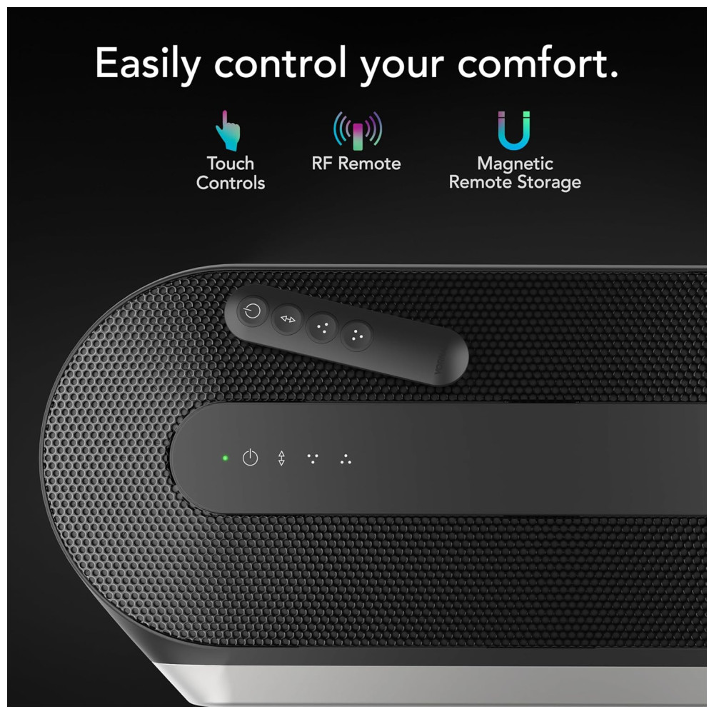 Com controles digitais de toque e um controle remoto magnético, você pode gerenciar o conforto de maneira prática e intuitiva. O ventilador oferece cinco configurações de velocidade, ativa a oscilação Airwave e permite ajustar a inclinação motorizada em 40°, adaptando-se facilmente às suas necessidades.