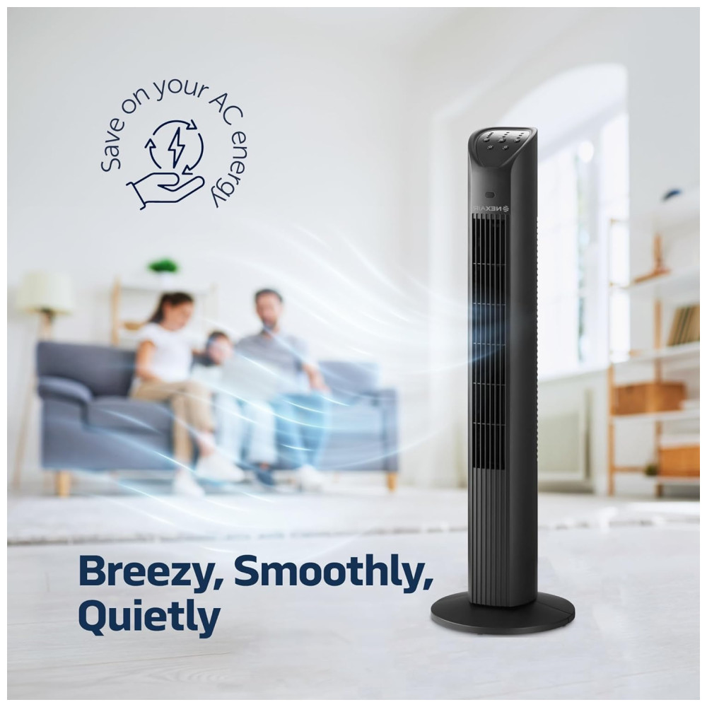 Ventilador de Torre Oscilante 3 Velocidades Portátil com Controle Remoto Silencioso para Quarto com Timer 7.5H Nexair