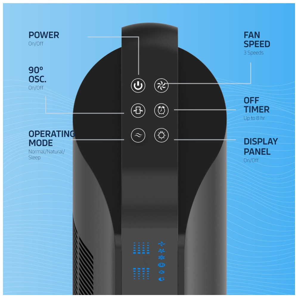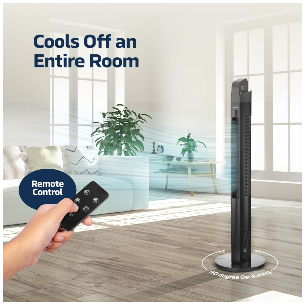 Este ventilador de torre Nexair é ideal para resfriar uma sala inteira com sua ampla faixa de oscilação de 90 graus. Com três configurações e modos de velocidade, é possível personalizar o movimento do vento de acordo com suas preferências. O controle remoto prático e funcional completo facilita o ajuste dos recursos do ventilador. Além disso, ele possui um temporizador de desligamento automático de até 7,5 horas, tornando o uma ótima opção para uso noturno.