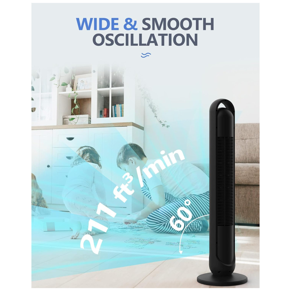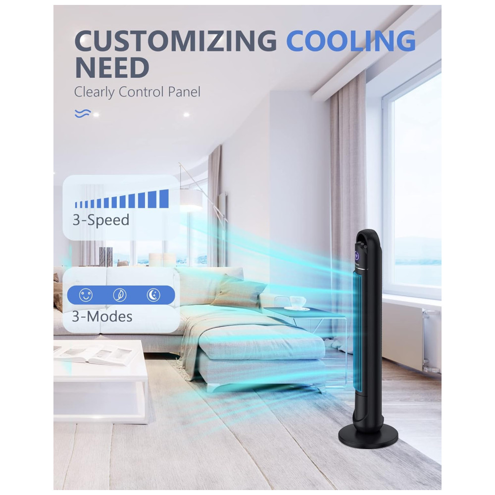 Crie Sua Própria Maneira de Resfriar: Com 3 velocidades e 3 modos, o ventilador torre oferece uma variedade decente de níveis de conforto, permitindo que você ajuste o fluxo de ar conforme sua preferência. O design sem hélice e o contorno esguio se integram perfeitamente à decoração da sua casa, e a alça de transporte torna fácil levá-lo para o quarto, escritório ou qualquer outro lugar que você desejar.